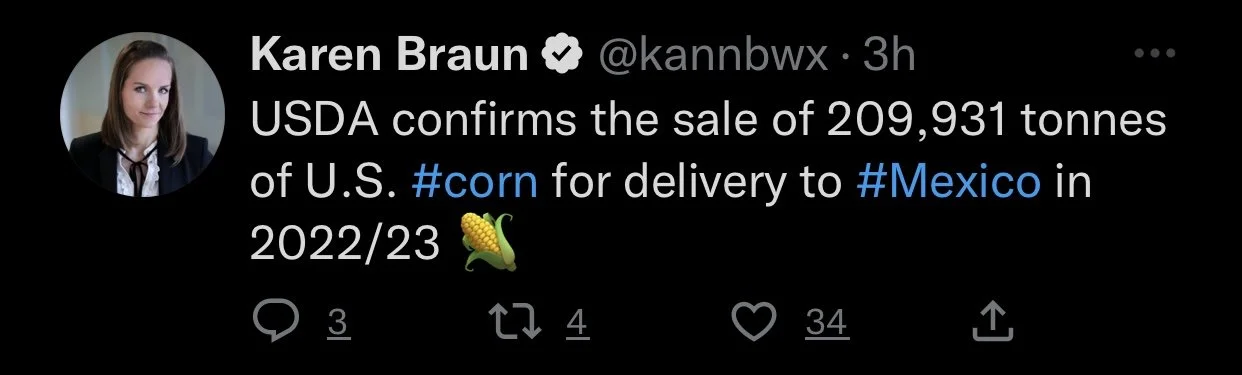 If weather continues to be decent Brazil is looking for a very massive crop. Rains have also helped Argentina's situation. But we have to keep in mind that Argentina's weather is one of the worst we they have seen in history. So there is chance that Argentina steals some of the focus from Brazil. But we of course can’t ignore the large crop in Brazil. South American weather will continue to be the largest factor going forward.