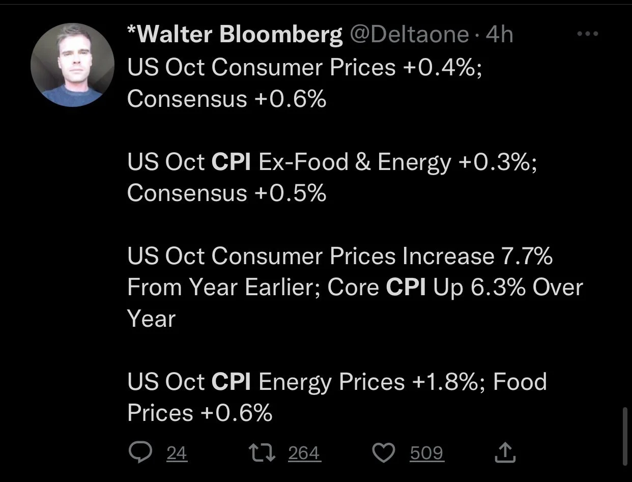 CPI (Consumer Price Index) came in this morning at 7.7% (YOY) which was below expectations of the anticipated 7.9%. Which is the smallest raise we have seen since January. This led to a massive rally in the stock and equity markets, as well as the dollar hitting its lowest levels in over a month. With inflation cooling this much, some are asking the question; Has inflation peaked?.