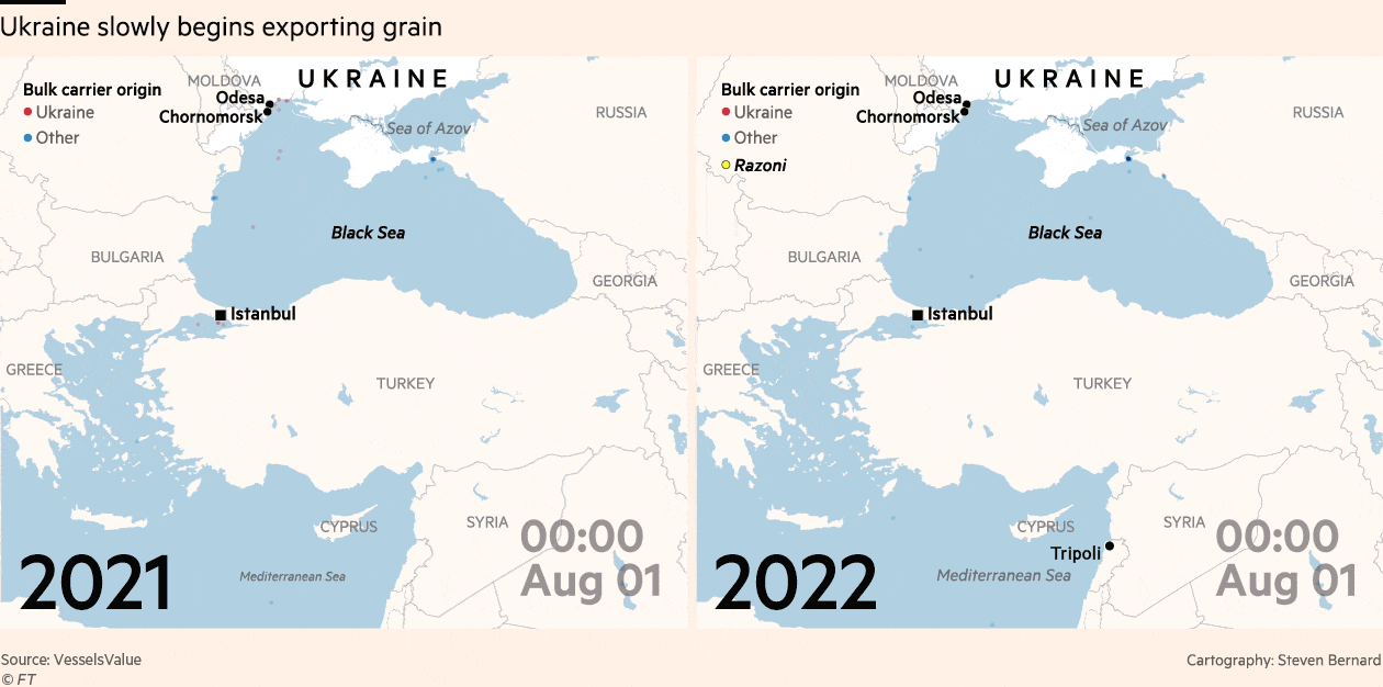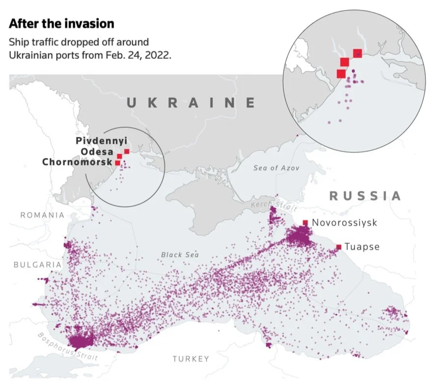 Below is two images that show how much Russia's invasion has effected the Ukraine ports.