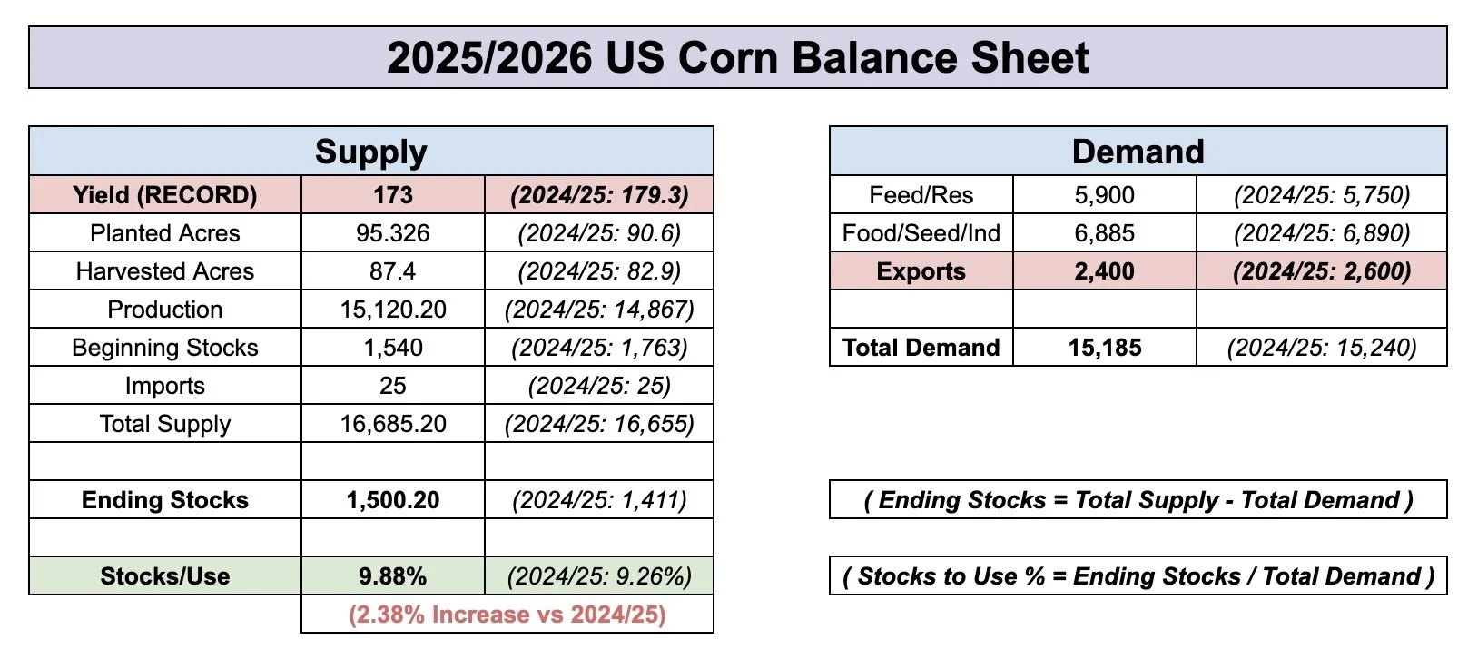 USDA TOMORROW. LONG TERM PATH FOR SUB 10% CORN STOCKS TO USE?