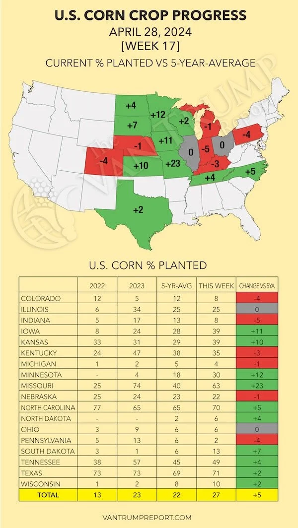 Here was the planting progress numbers from Karen Braun & Kevin Van Trump: