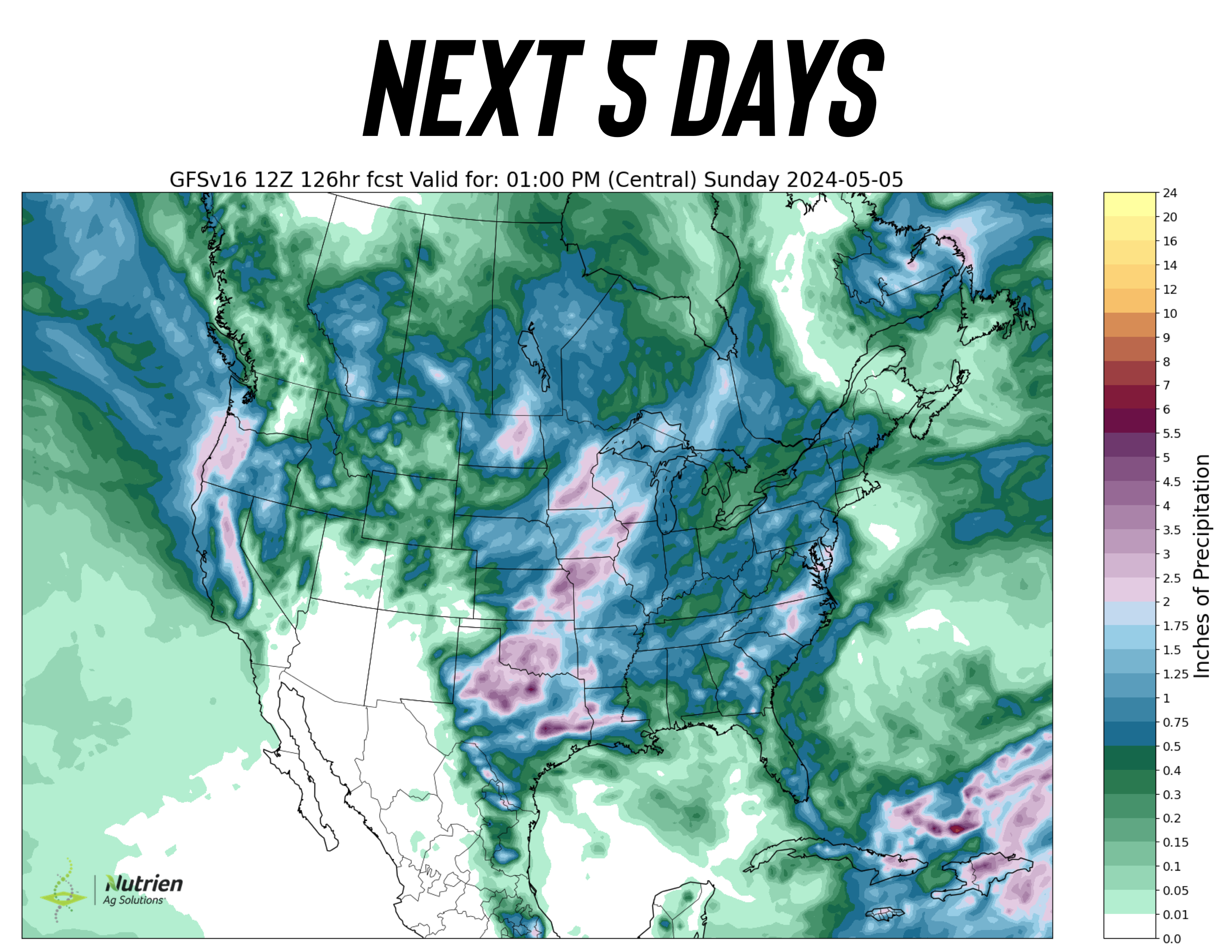 We got some good rains in the corn belt, and rain is expected to return over the western to central corn belt while being drier to the eastern corn belt.