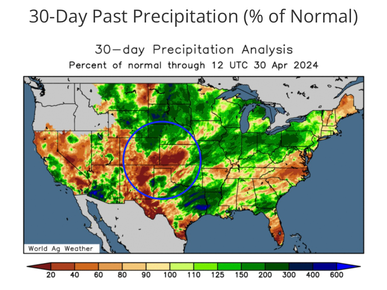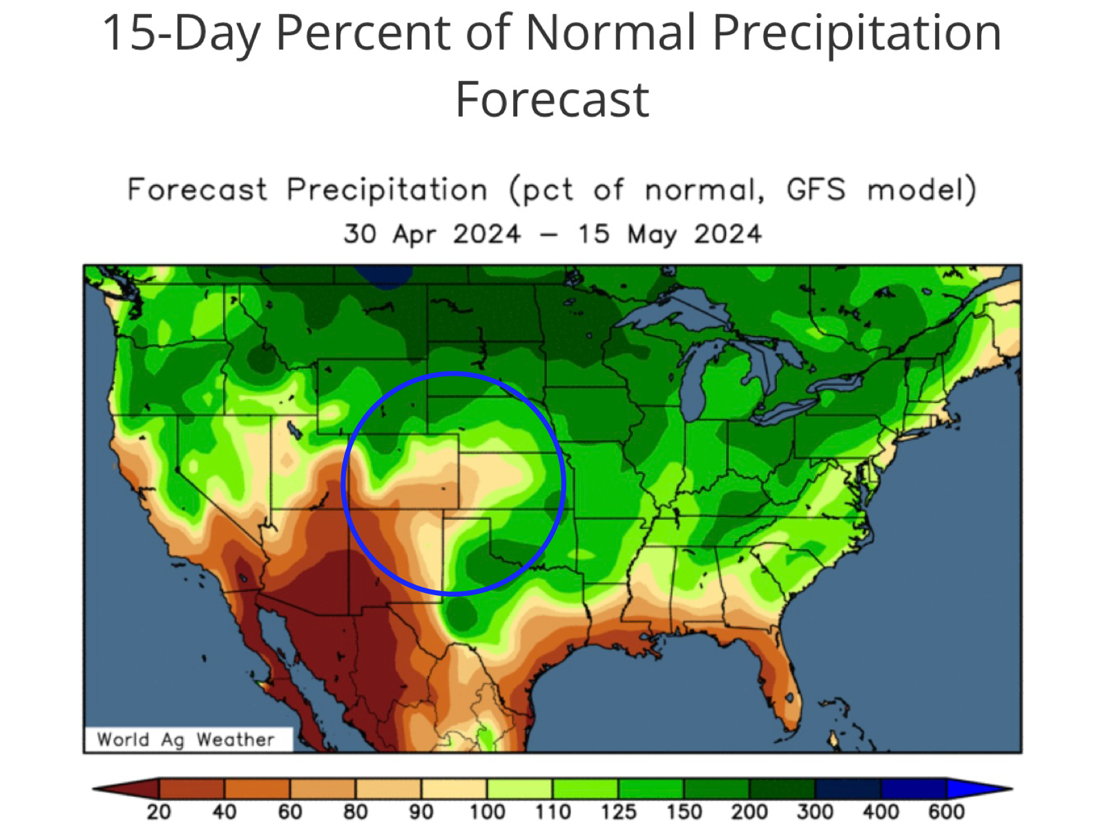 Most of winter wheat country has continued to miss these rains that the midwest got, and the forecasts are also looking spotty.