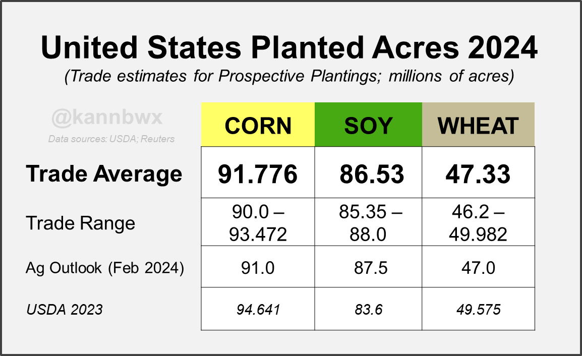 Here is a chart from Darin Fessler of all 3 main grains and how the prospective planting numbers have shaped up compared to the USDA outlook.