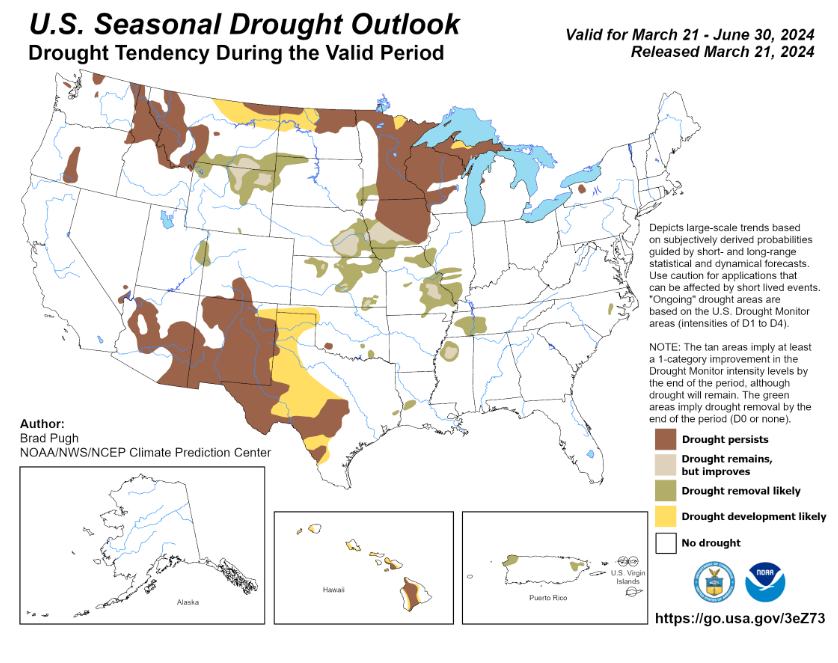 However, there is some concerns as these rains they have received were lighter than expected to go along with the fact that the outlook is still hot and dry for April.