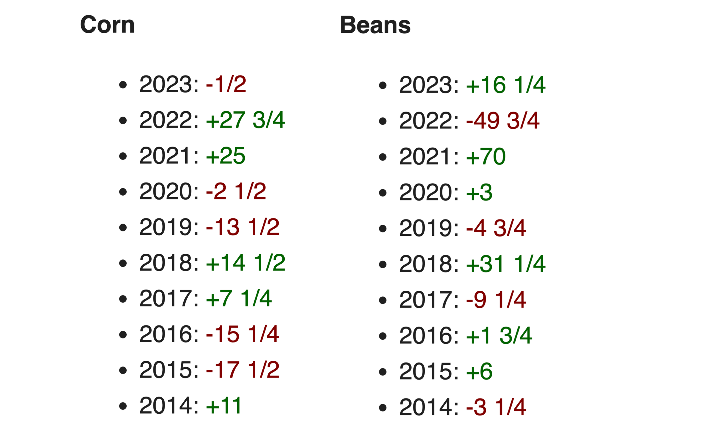 Soybean prospective plantings for this report have came in higher 4 times in the past decade. 2014, 2015, 2017, and 2022.