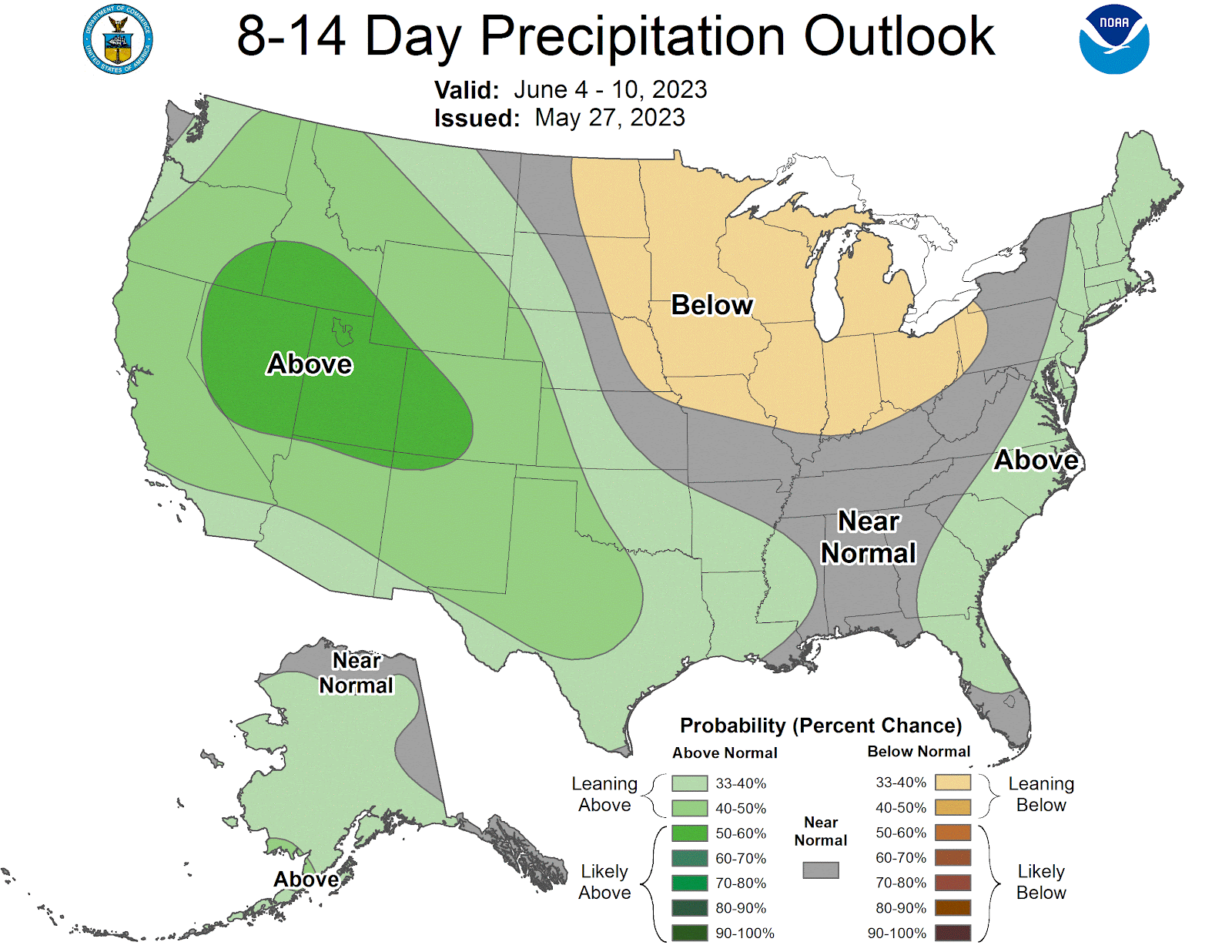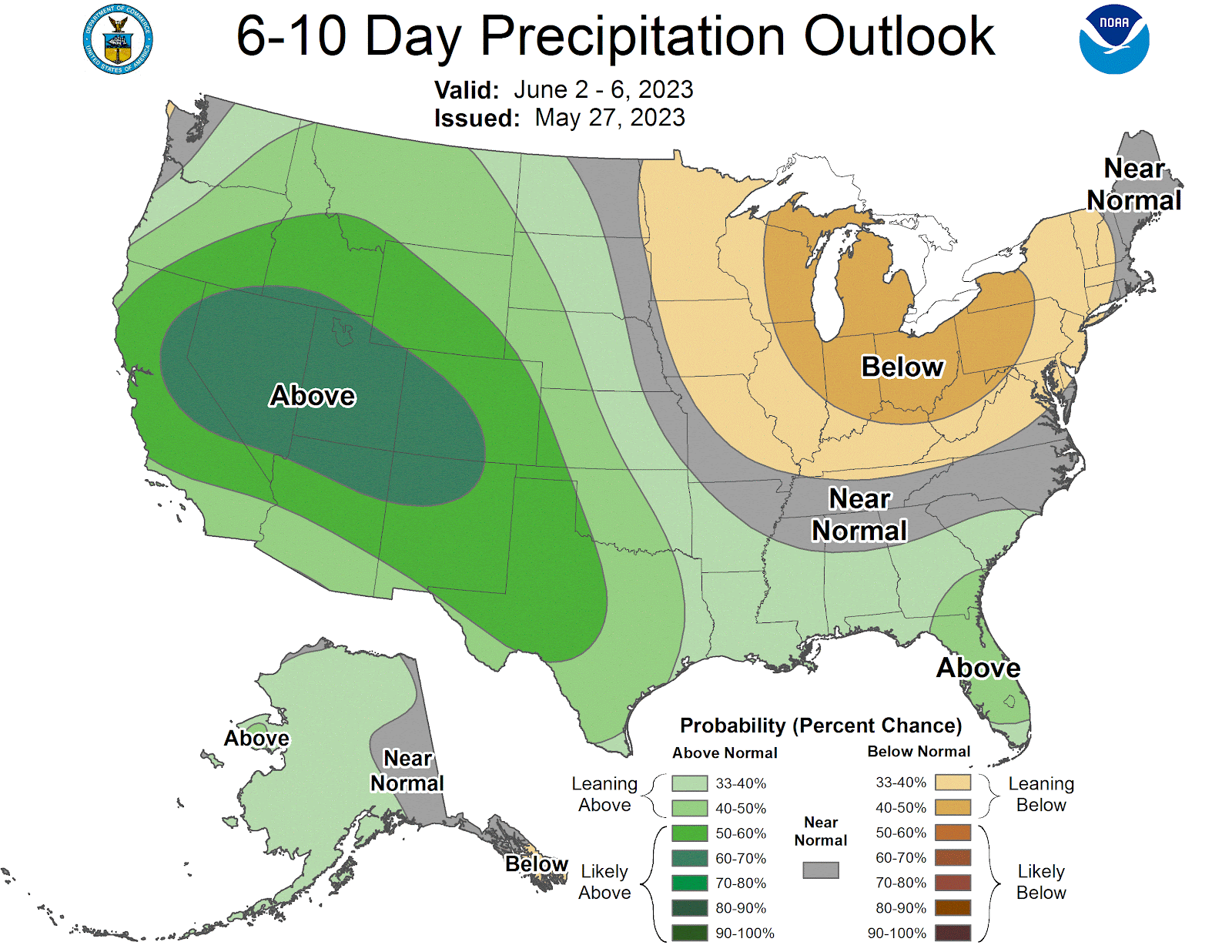 Let’s start off with a couple precipitation outlook maps. These are bullish. Very bullish with the dry weather forecasted for the corn belt and in particular the I states.