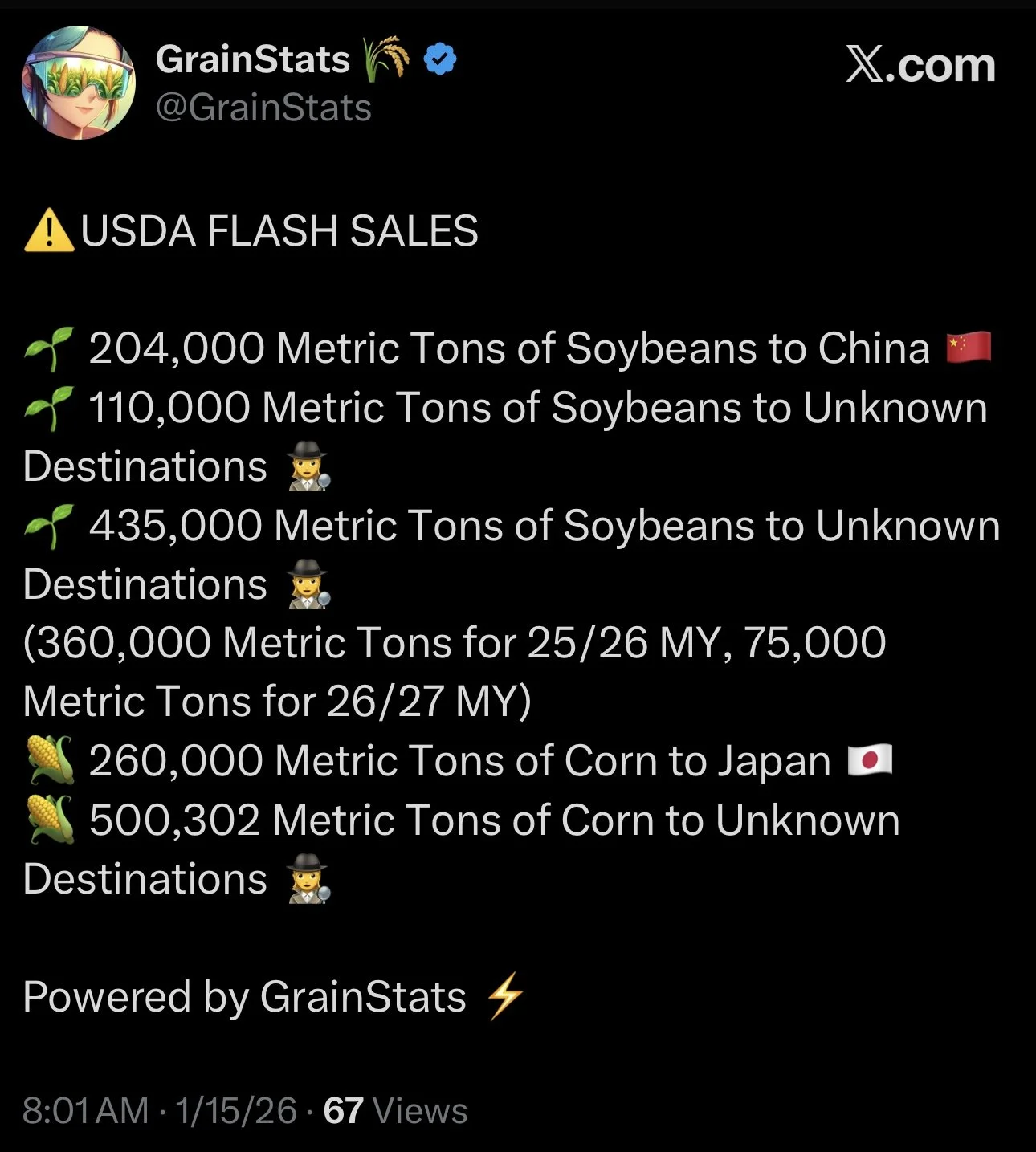 Soybean sales were a record for the week, and the 3rd strongest of the marketing year.