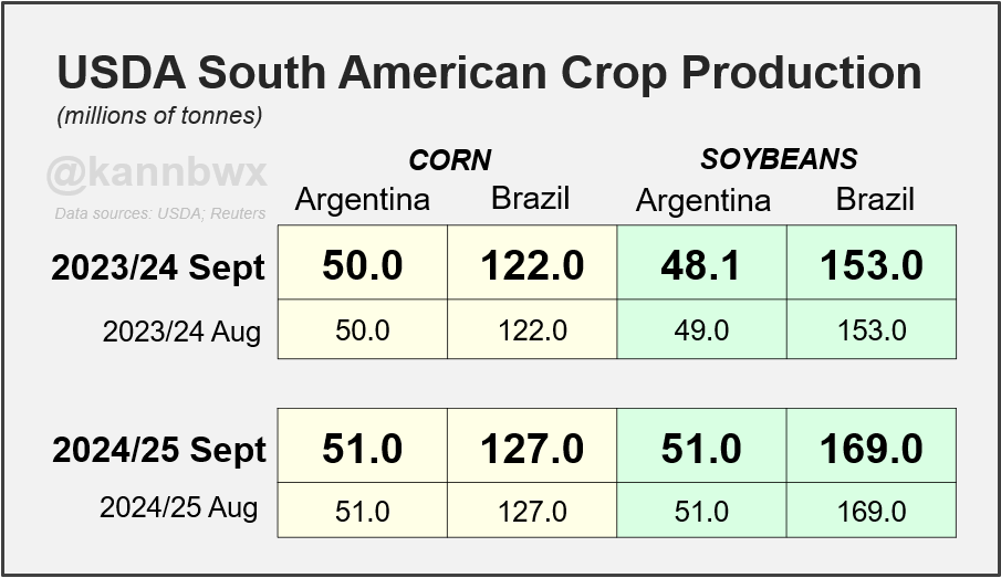 Soybeans were higher than estimates and compared to last month, but we did see a small cut to the Argy crop.