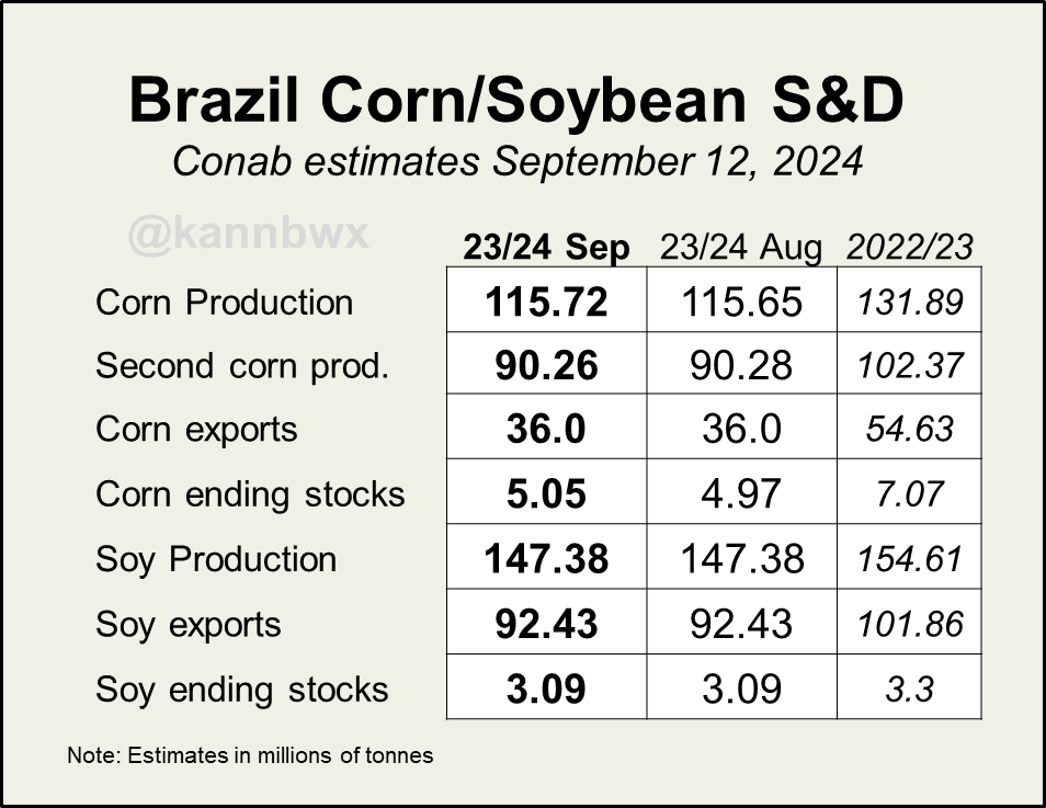 No changes were made to the Brazil crops for either CONAB or USDA, but we do still have a pretty large difference between the two. USDA sees the Brazil crops much larger.