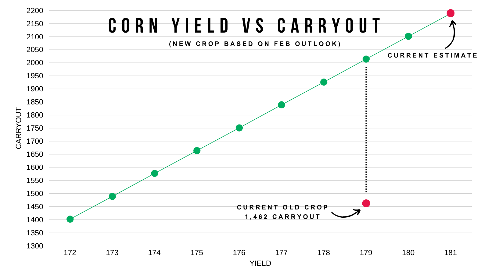 Based on the current numbers, if we raised the same 179 yield as last year we would still get a new crop carryout of over 2 billion bushels vs last years 1.5 billion.