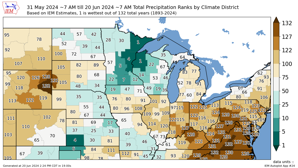 I have been saying for months that a wet spring needs a wet summer. Without it, you get a disaster. With it, you can raise a decent crop. We will know very soon which it is.