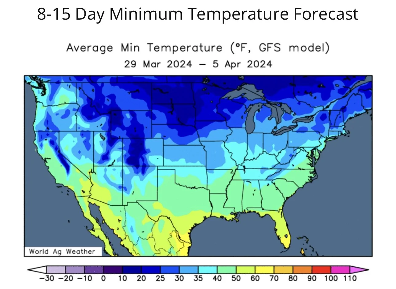 Although we are getting a cold snap, the outlook for planting season still looks far hotter than normal.
