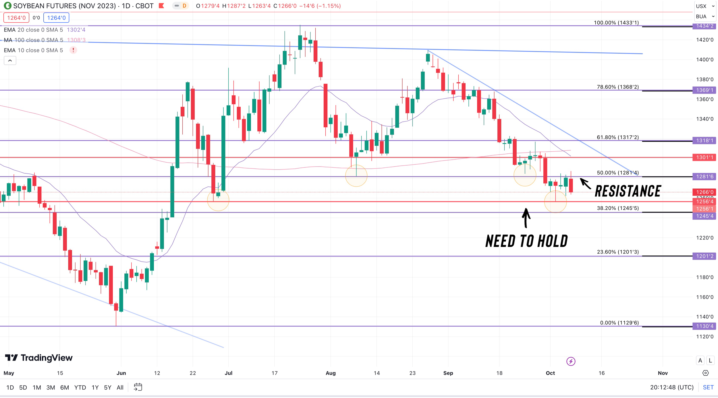Bottom line, short term it is going to be the USDA report next week. If yields come in better than expected, we likely make another leg lower. If yields come up short, we likely put in that seasonal bottom. Long term, the bean story is still bullish.