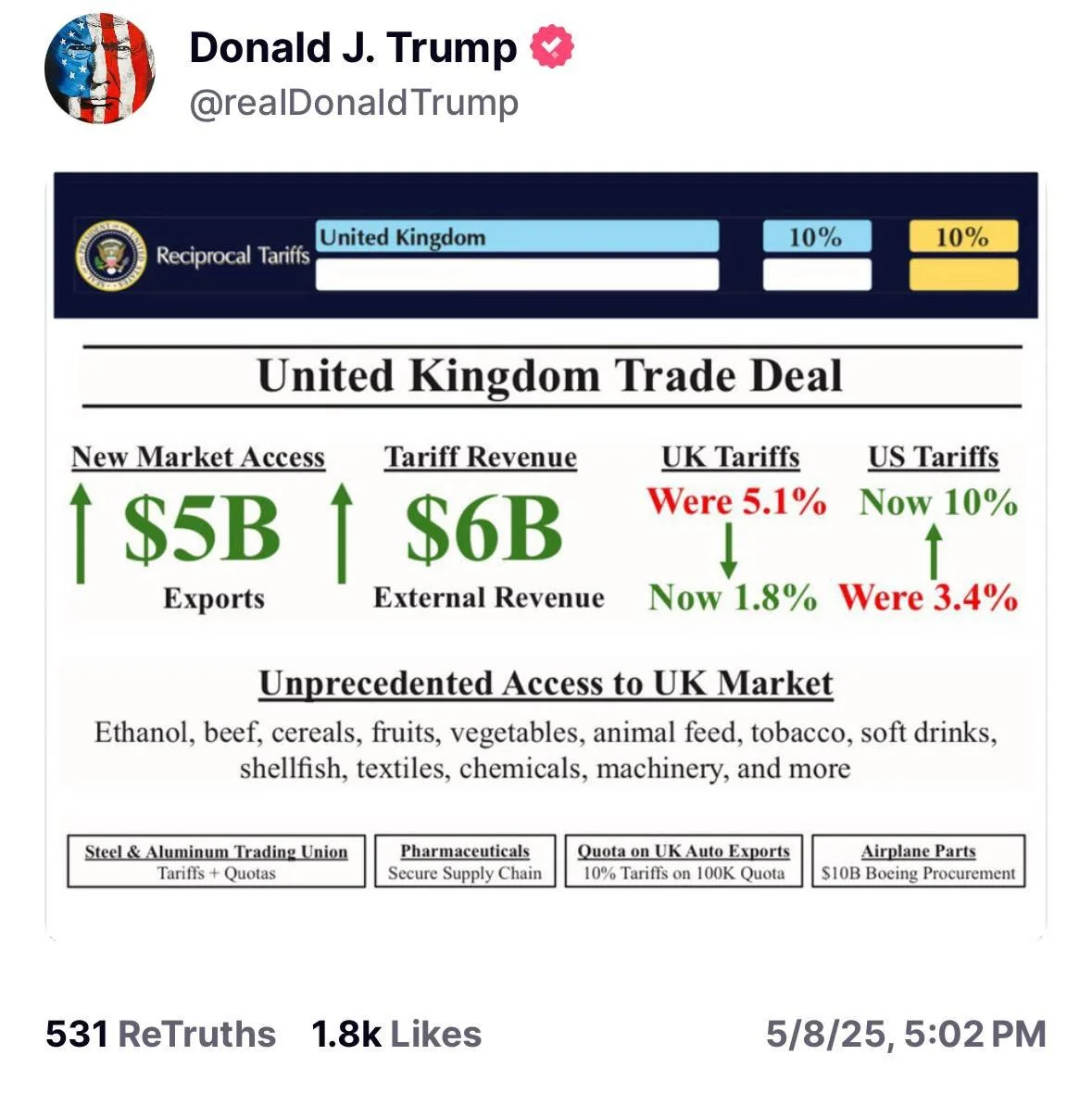 Trump and the UK came to an actual trade agreement (not just a rumor or random headline this time).