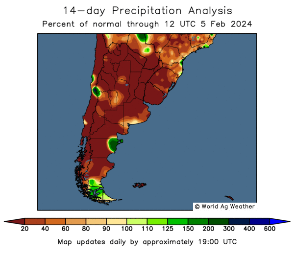 January is typically the rainest month for Argentina. But rainfall was -18% less than normal this January and even lighter than it was in January last year.