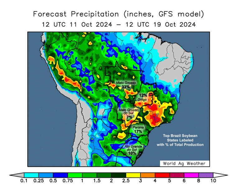 Currently rain is still scheduled within the next 1-2 weeks for Brazil.