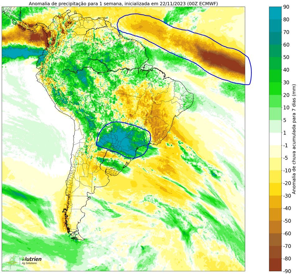 "We call this a wet sandwich. Nearing 80 days of too much rain in Southern Brazil. Most chatter has been about the drought to the north. Significant losses will be seen where it is too wet in the South. Together, very significant. These are nasty trends."