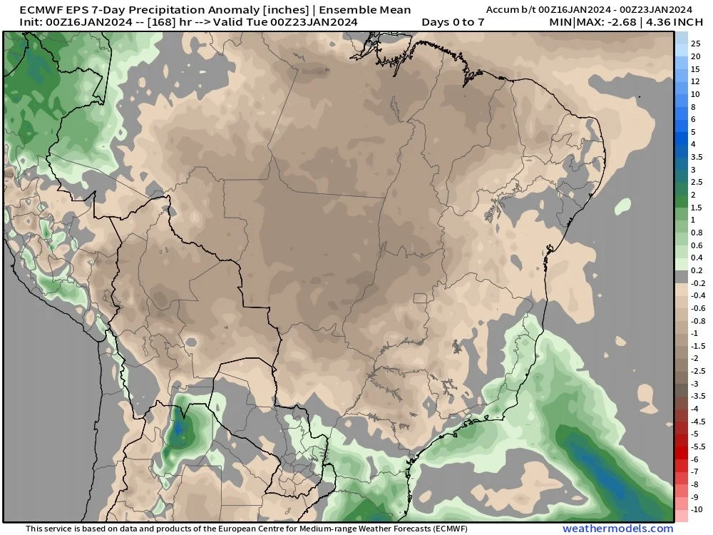 We also are seeing the forecasts shift back to hot and dry for Brazil.
