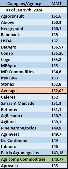 The association which is represented by thousands of farmers in Brazil projects production at 135 million. This is a very low number and far below the USDA's current 157 and CONAB's 155 numbers from last week.