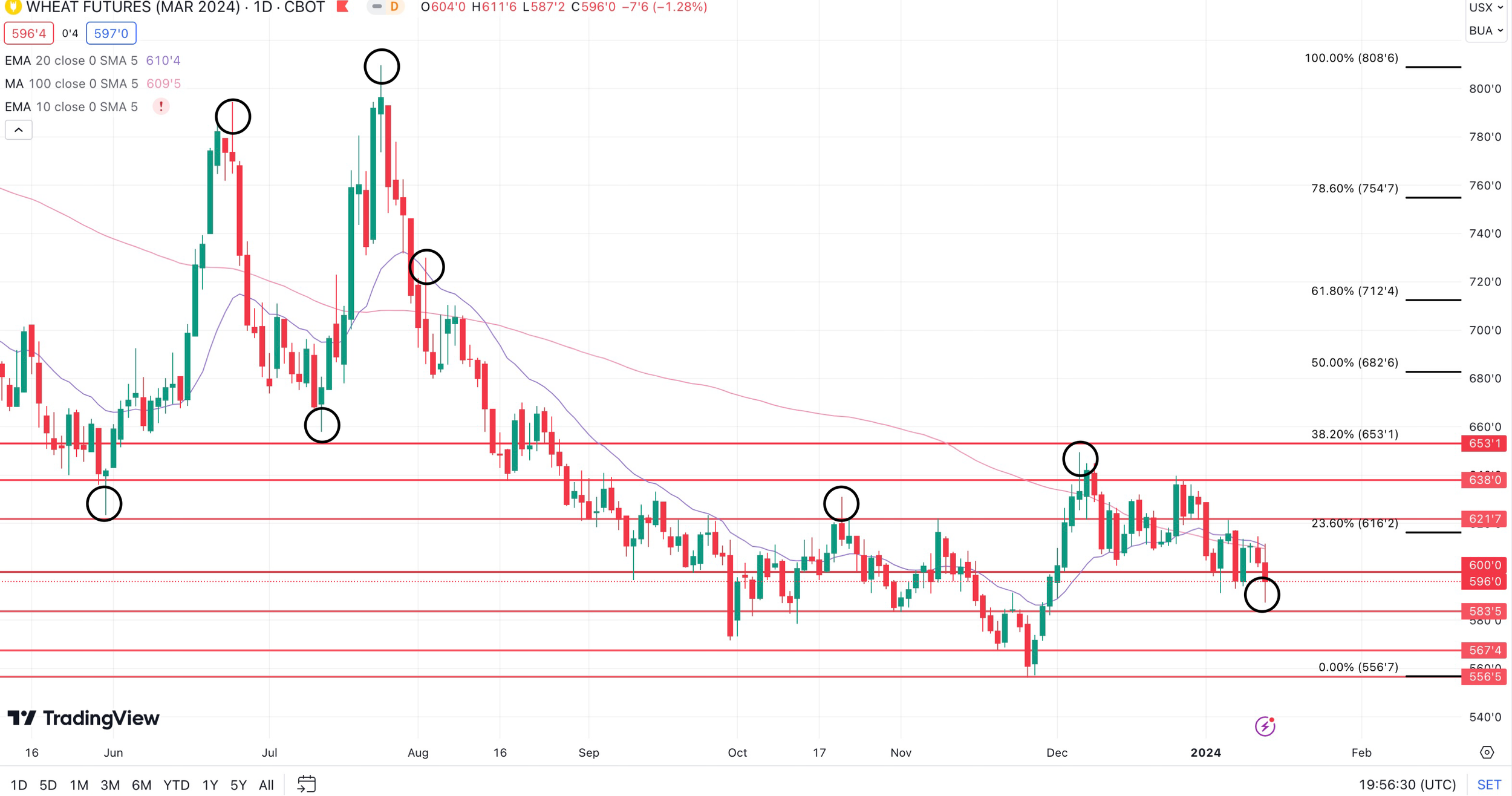 KC wheat is also stuck in the middle of a very wide range. Bulls need to hold $5.95 and take out $6.71