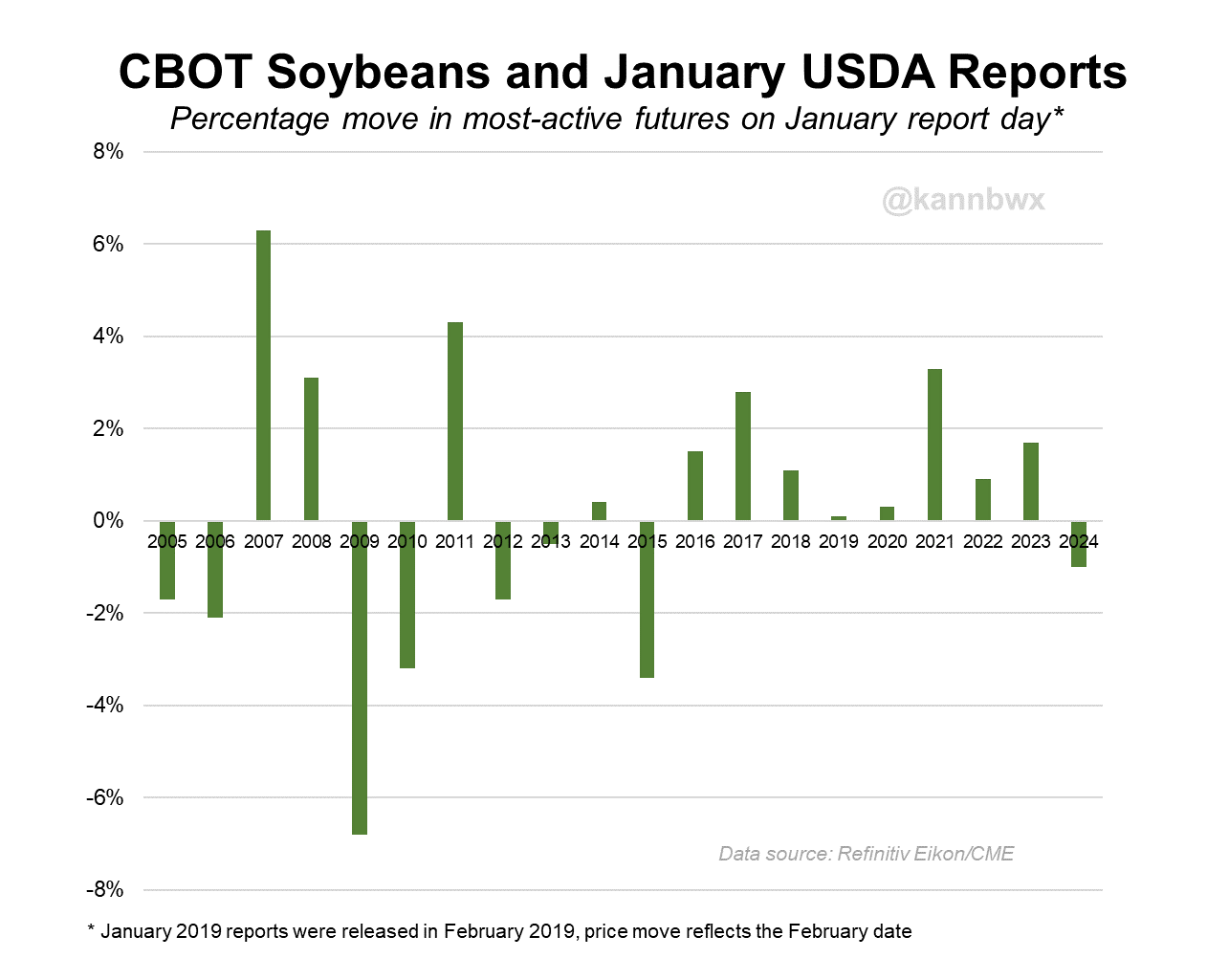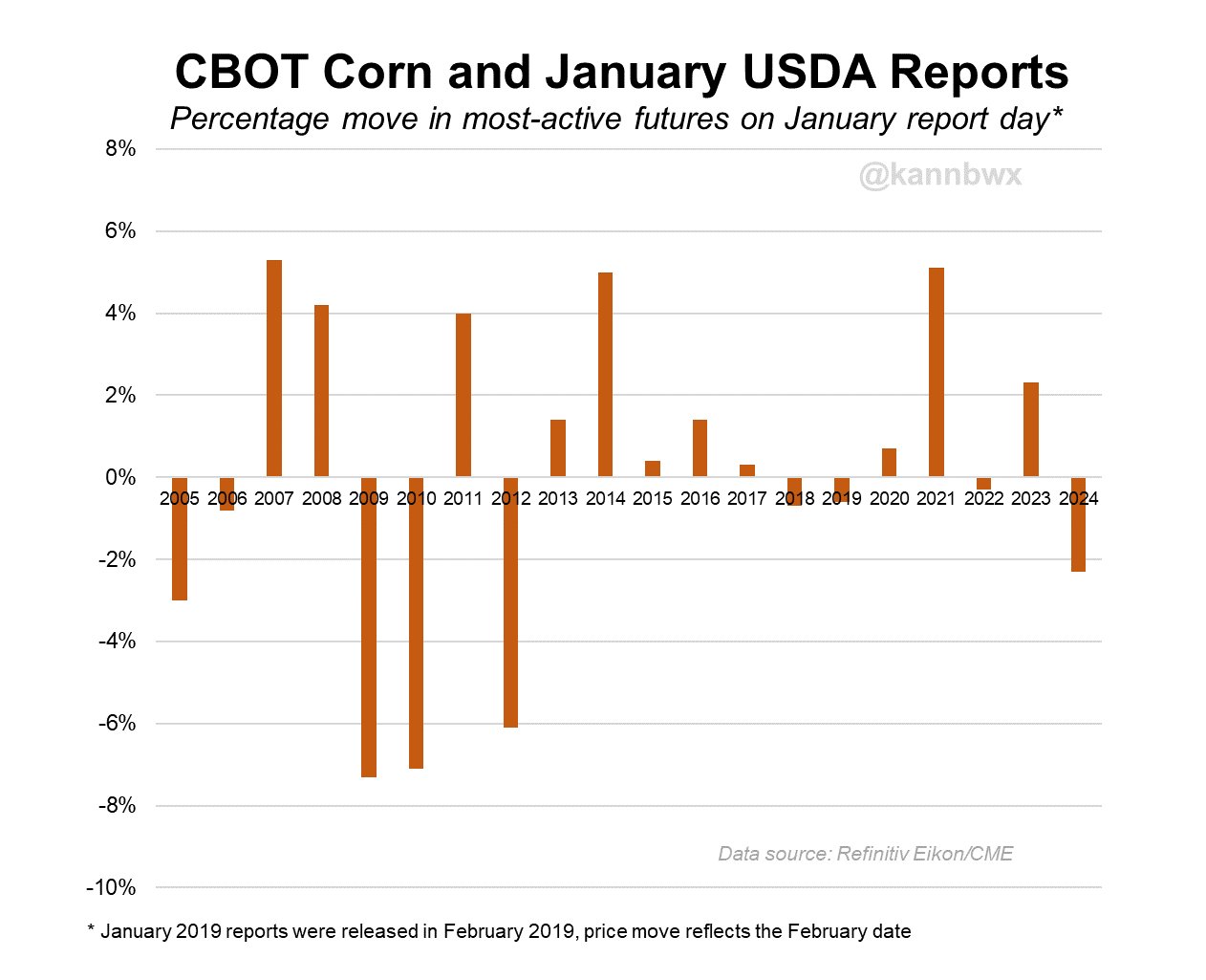 For corn, this was the worst performance for the January report in 12 years, since 2012.