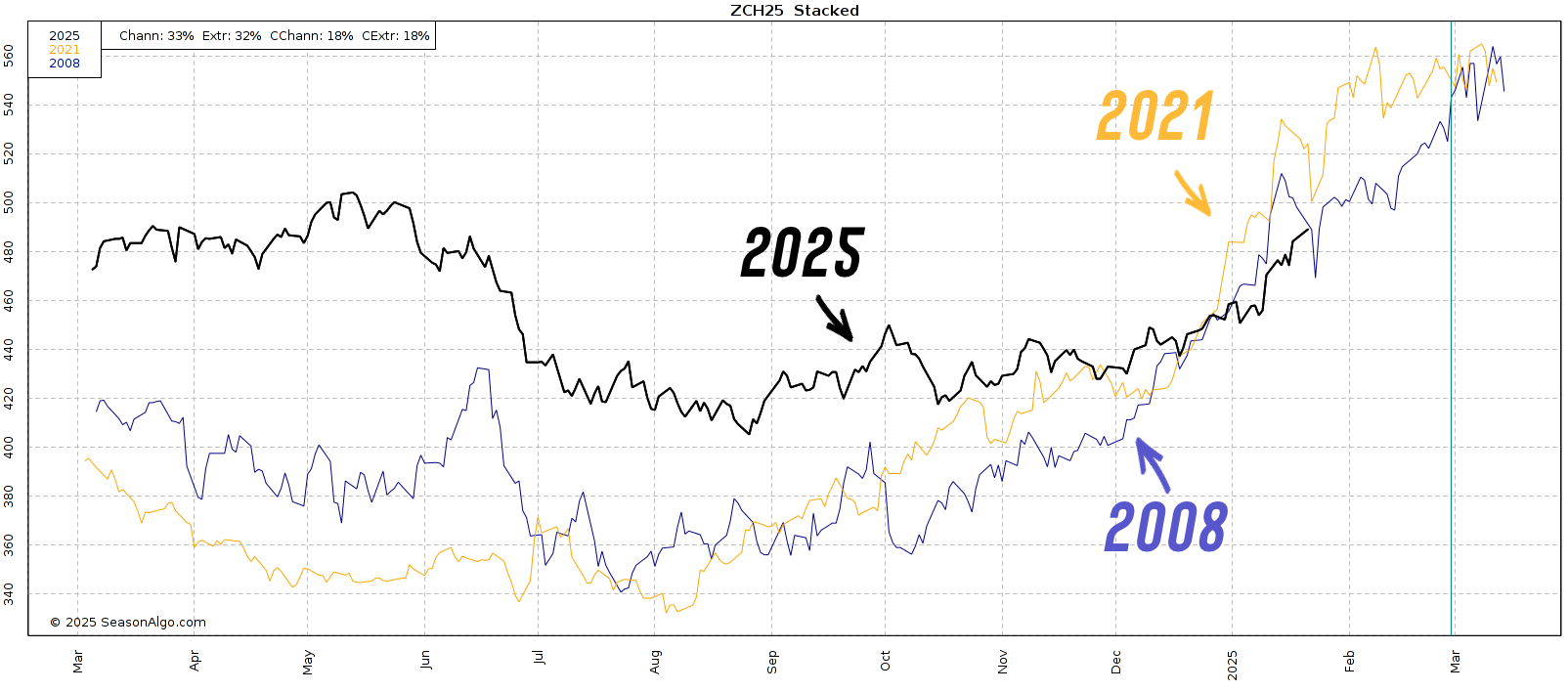 Only 2 years have had a stronger start to the year than 2025 for corn.