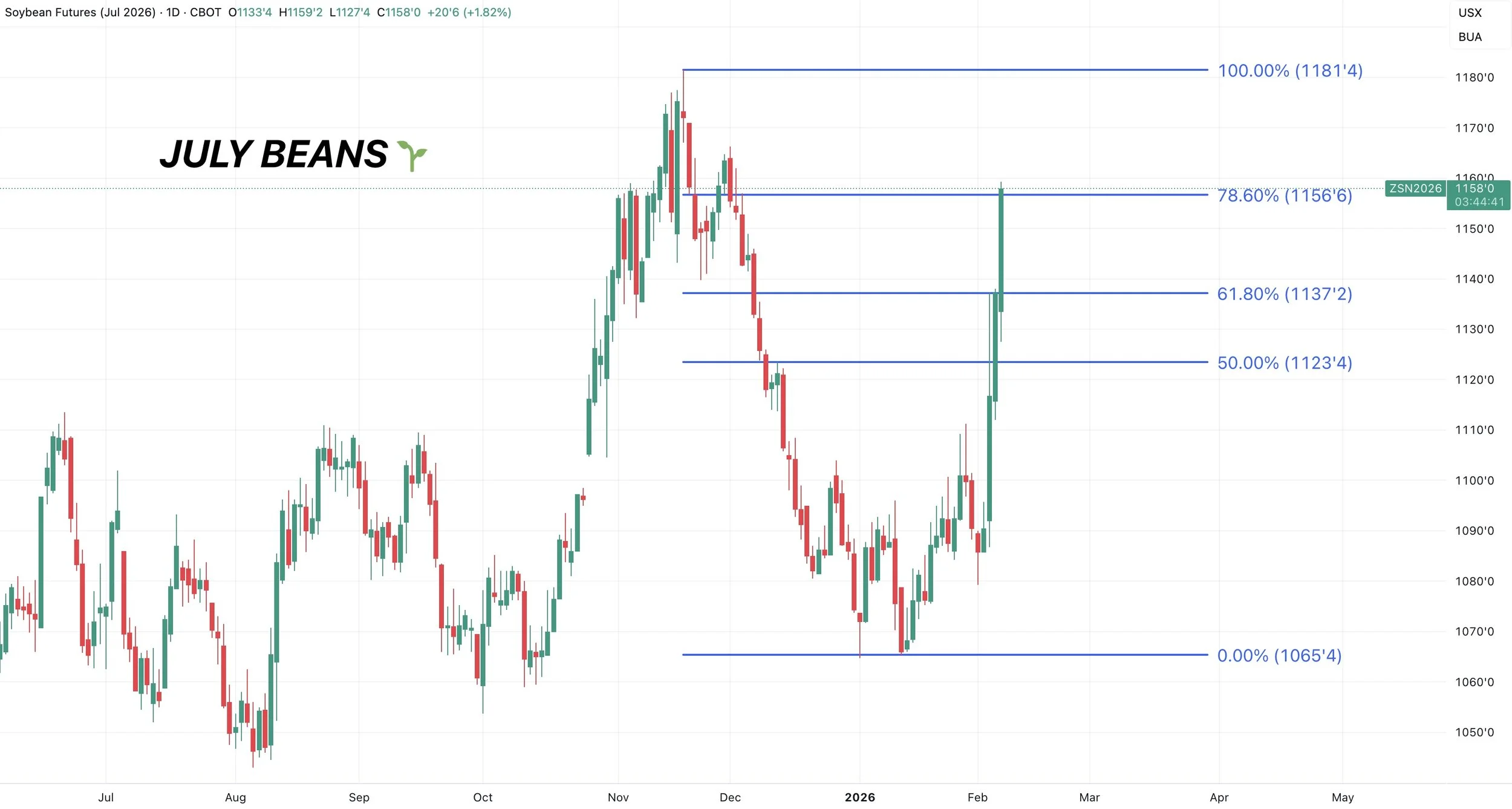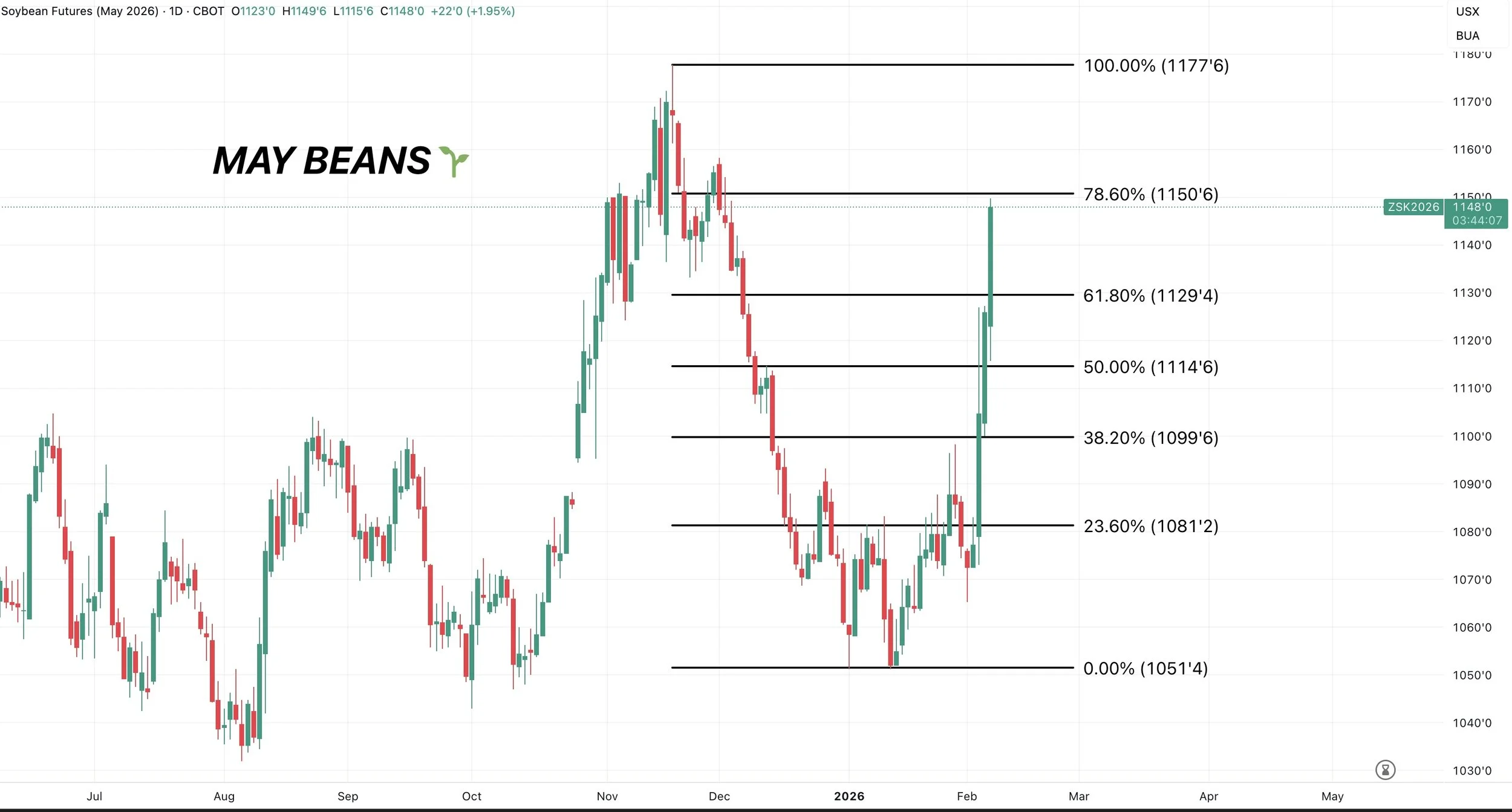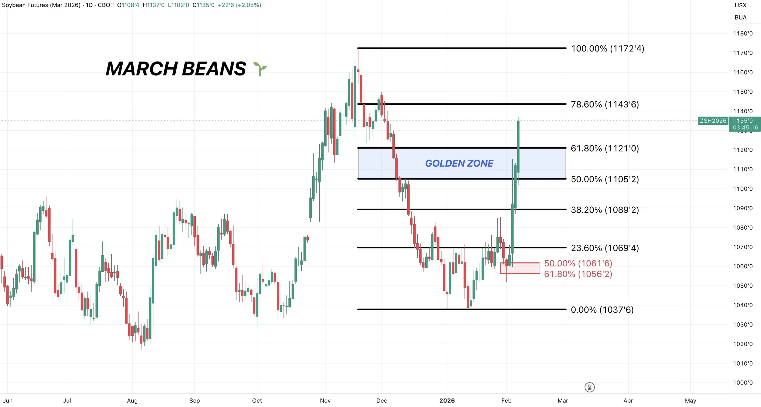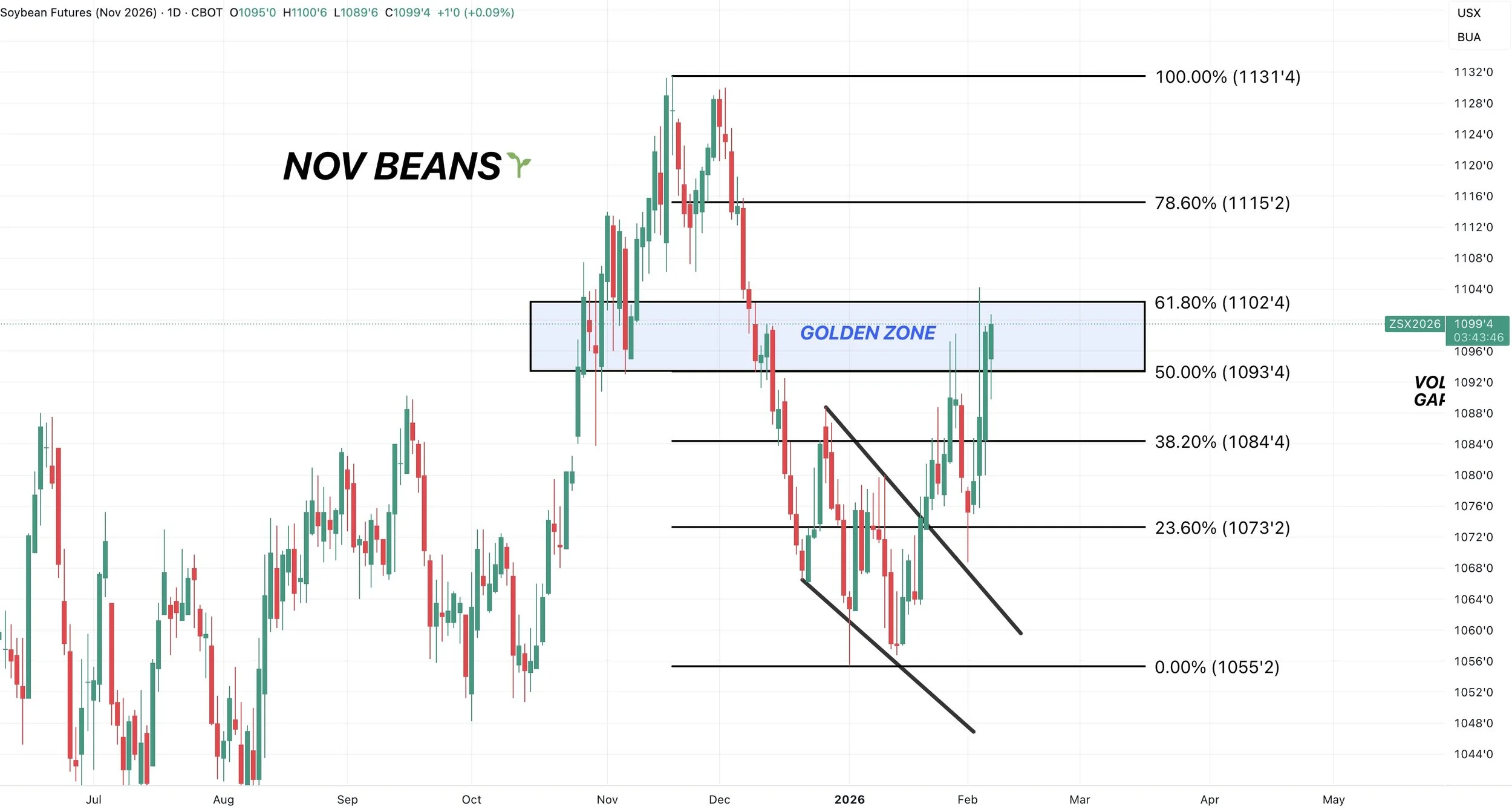 Soybeans have passed the first golden zone target, now approaching a secondary target.