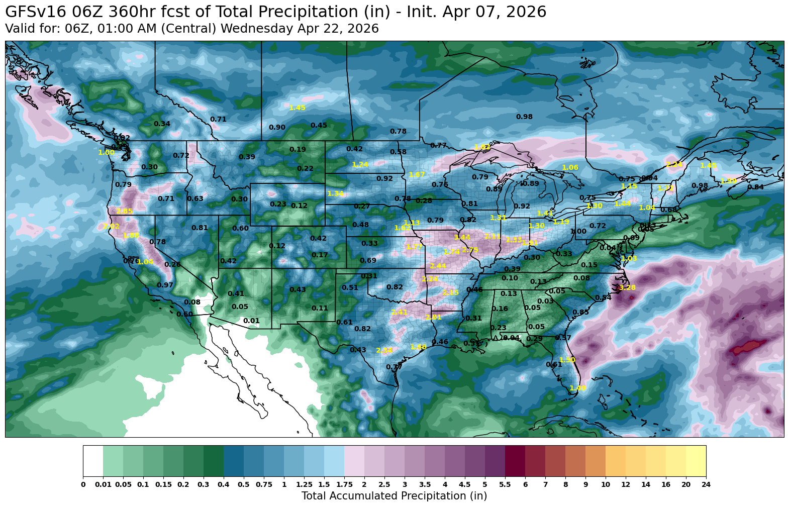 Here are the next two weeks of rain. You could argue the rains might be a little too far east.