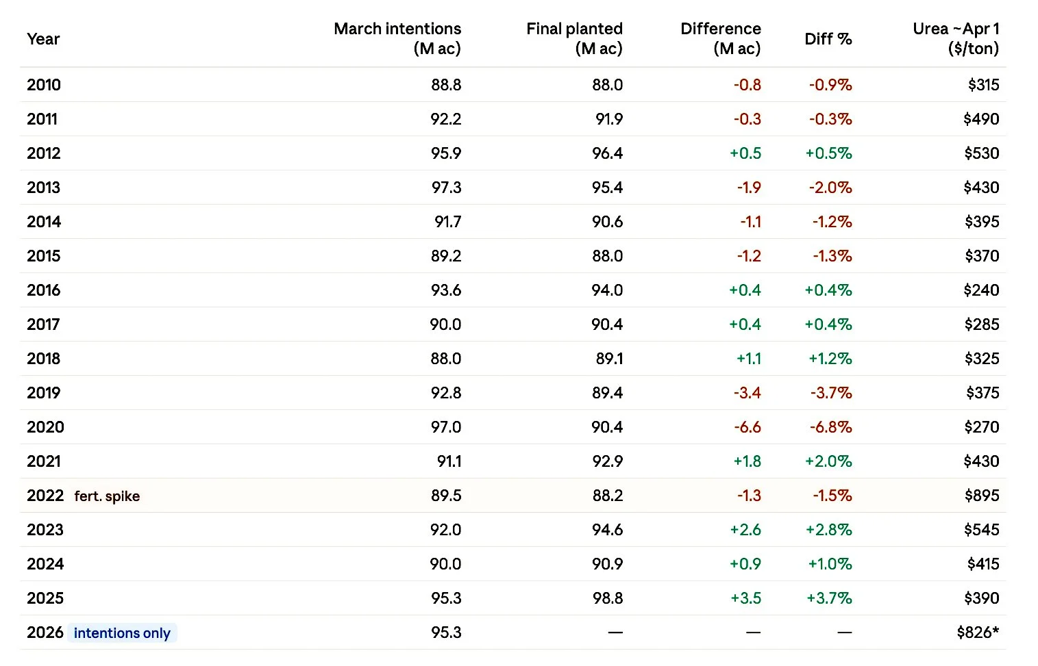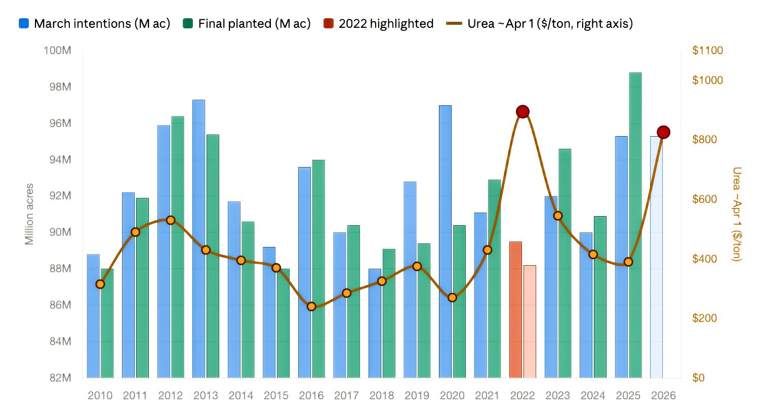 However, last time fertilizer was this expensive, the final corn acre number did come in 1 million less than what they had in the March intentions.
