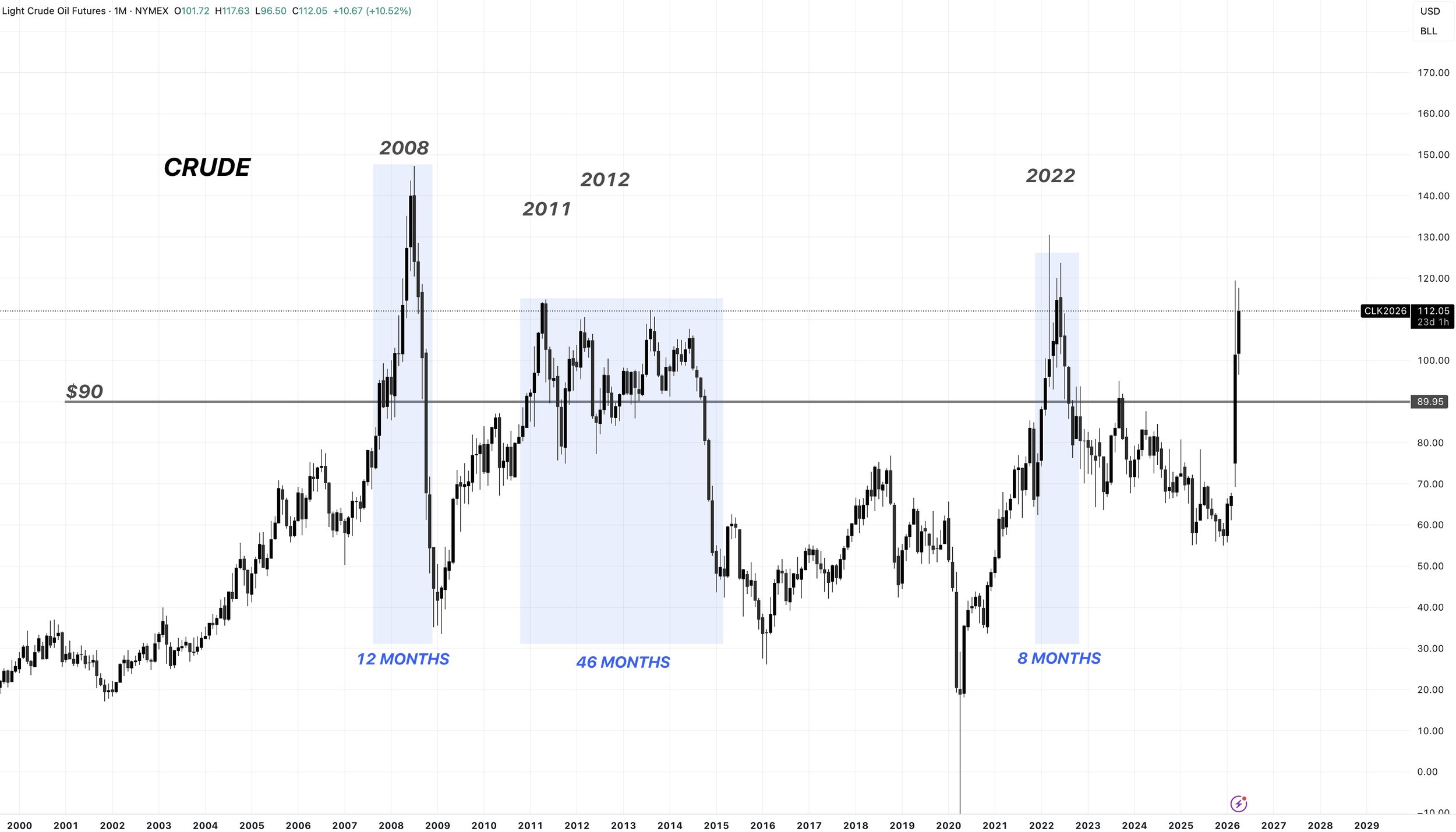 Every time crude ran above $90, it stayed there for months to in some cases years.
