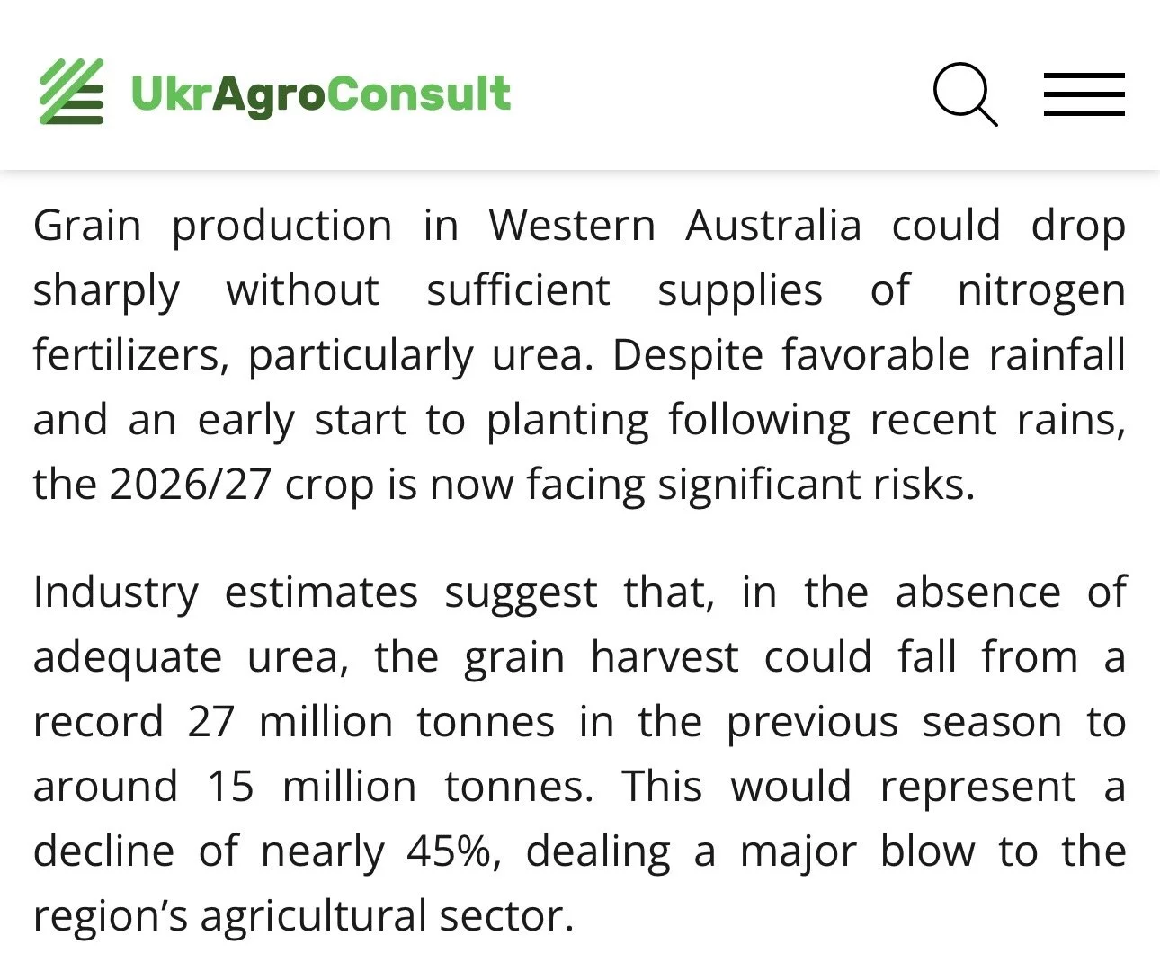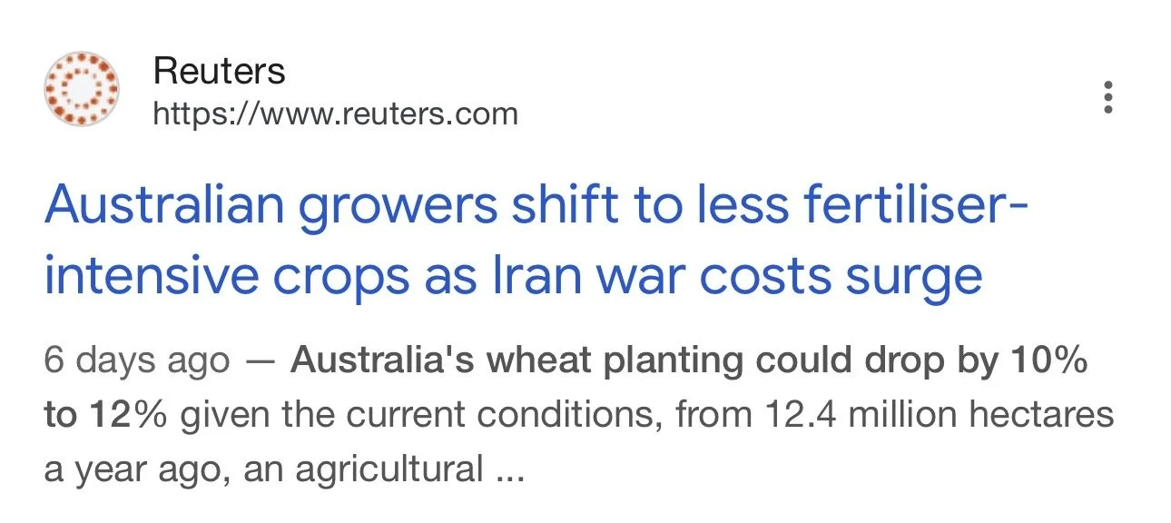 There are reports out there saying that Australian wheat areas might be down more than 10% compared to last year due to the fertilizer crisis.