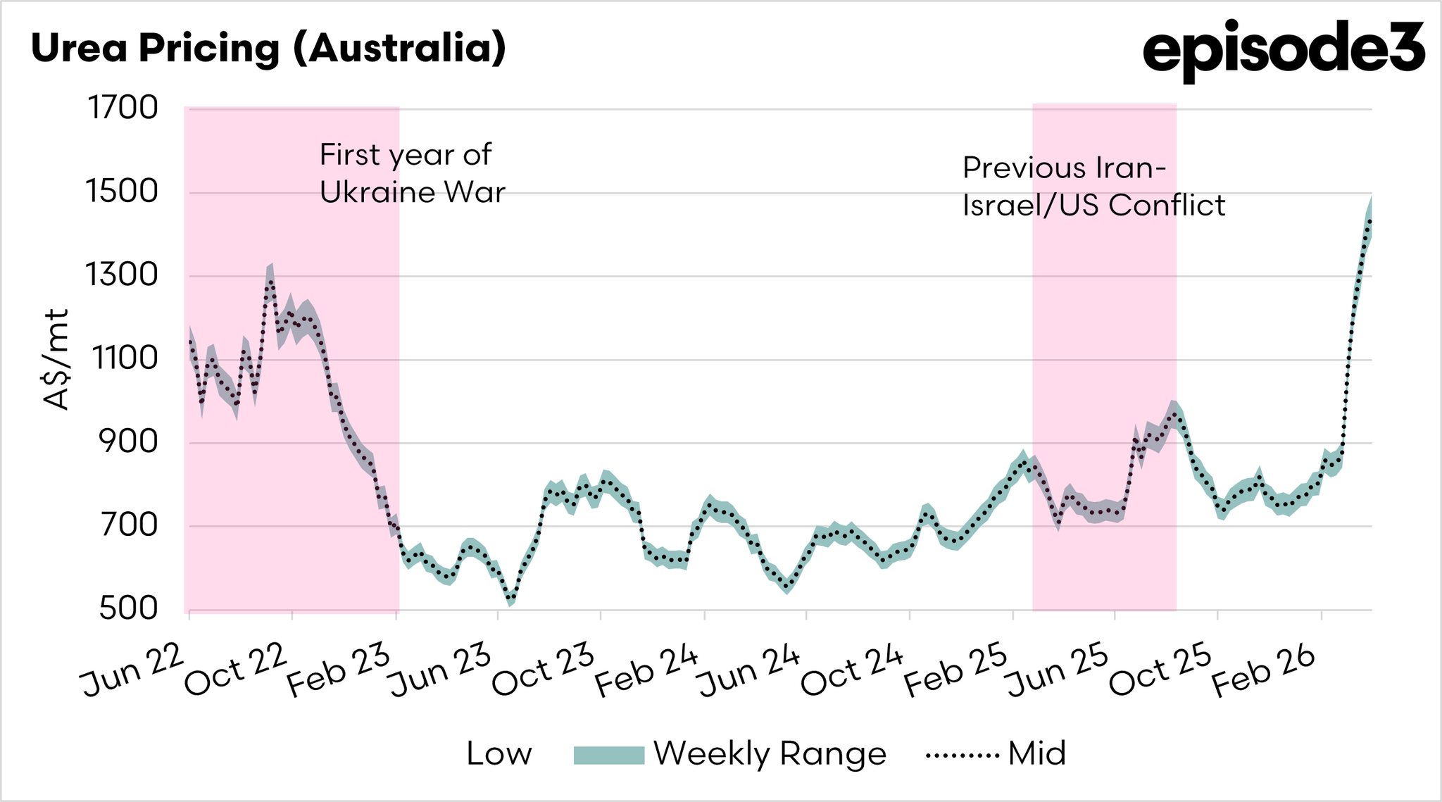 Urea prices in Australia are higher than where they were during the Russia and Ukraine war.