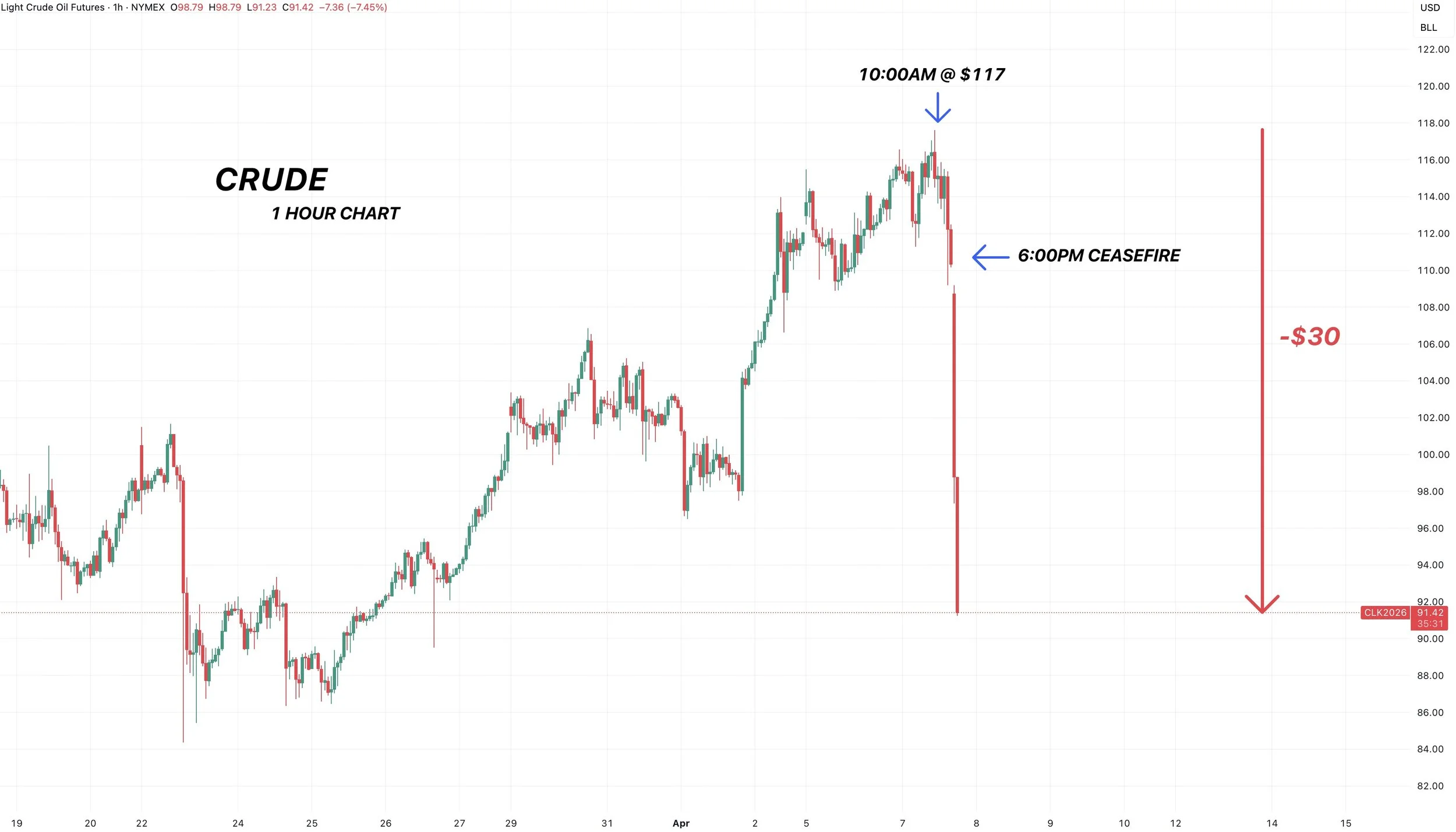 We started tanking at 6:00pm CT. As I am writing this it's trading at nearly $90 and roughly -$25 off the highs from earlier today.