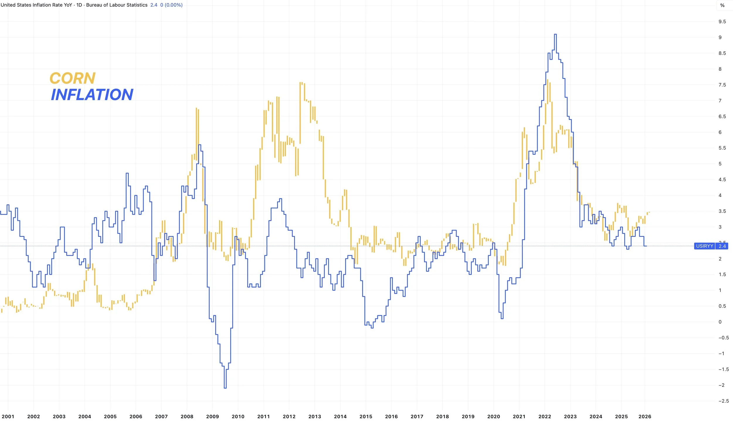 Here is corn prices compared to inflation. They tend to go hand in hand.
