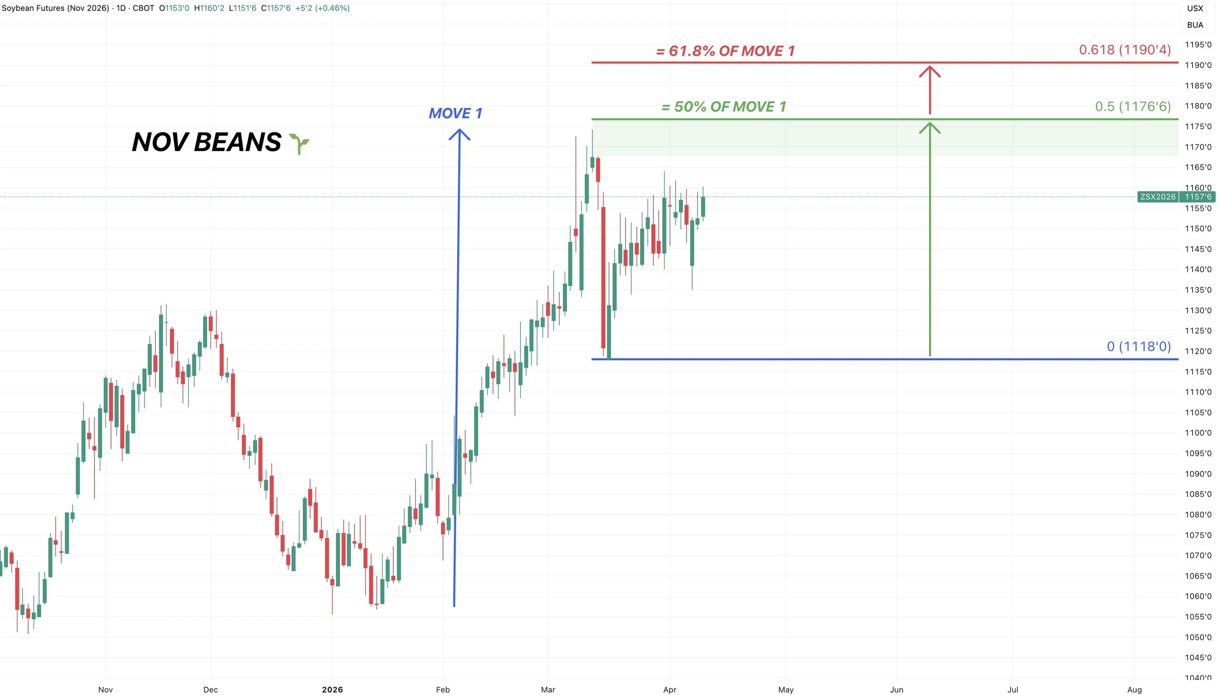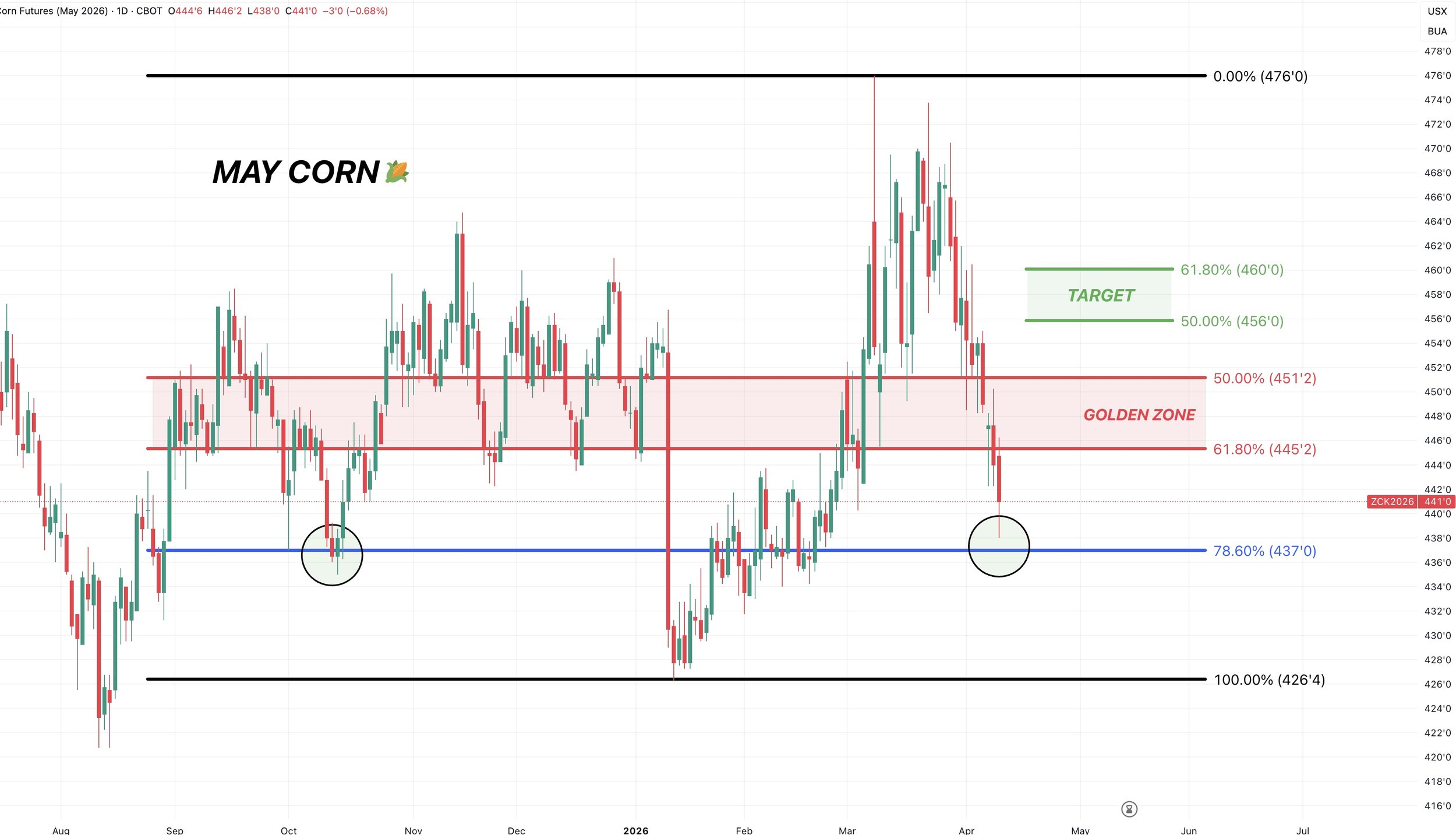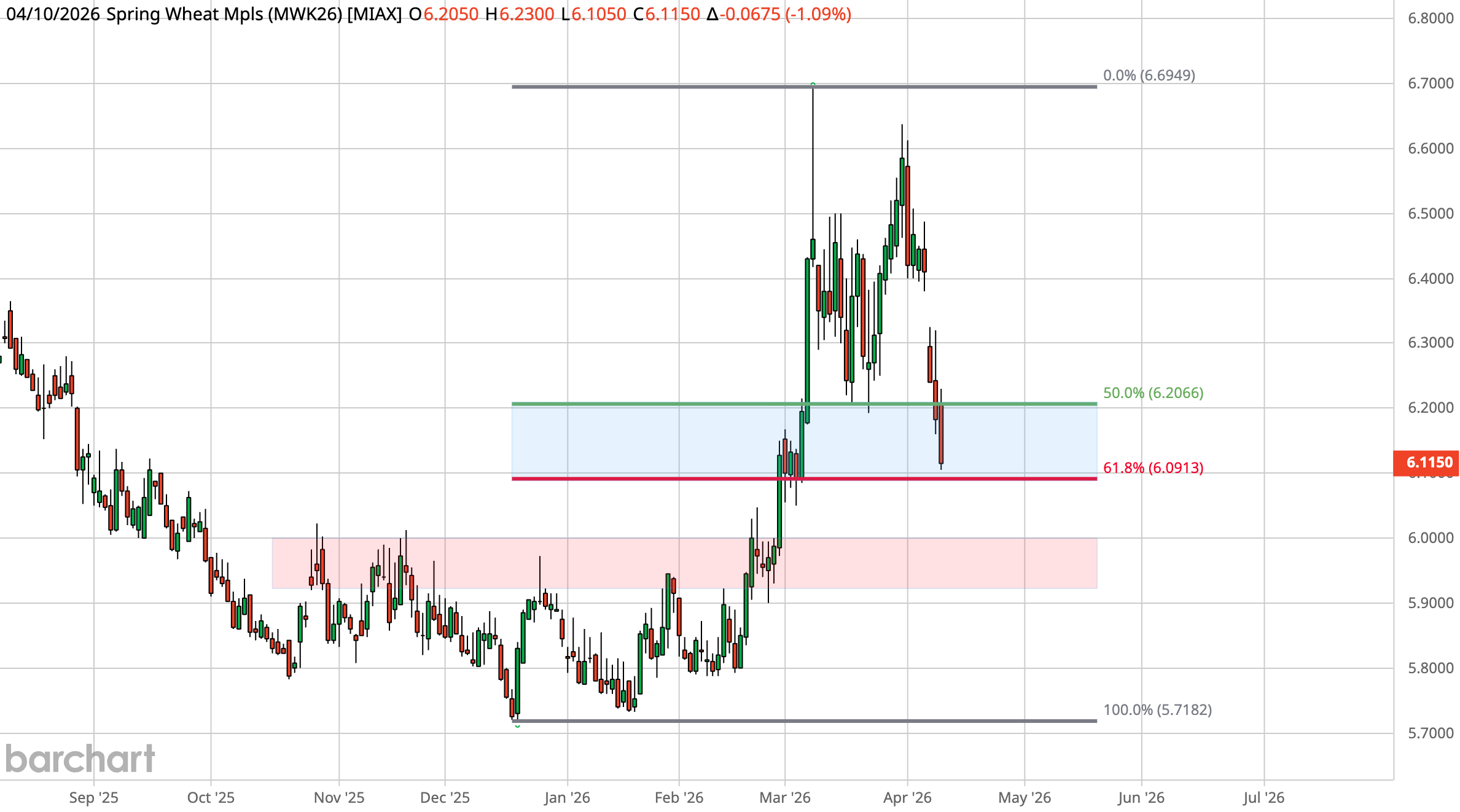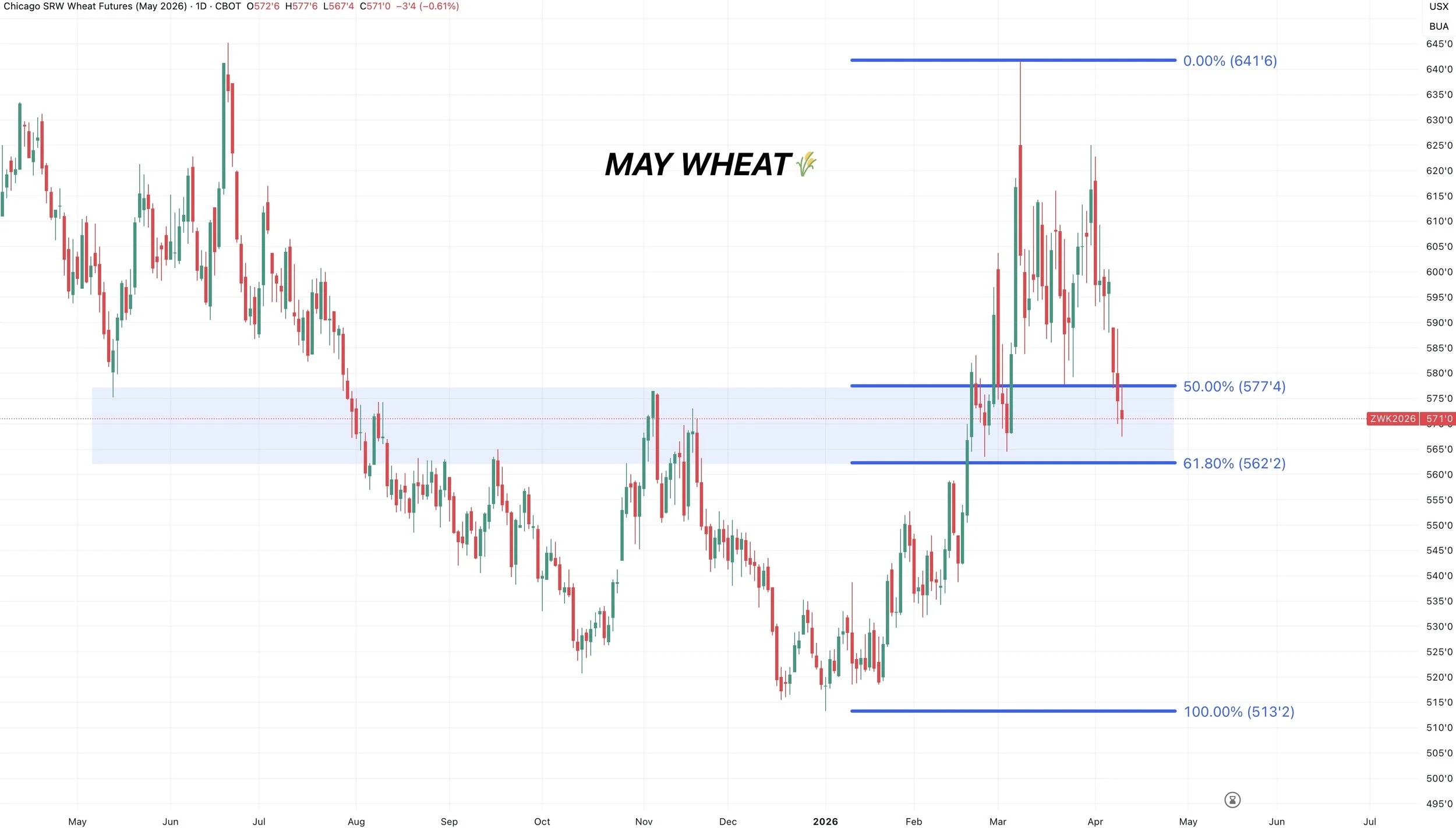 As Chicago is approaching the 61.8% level at $5.62