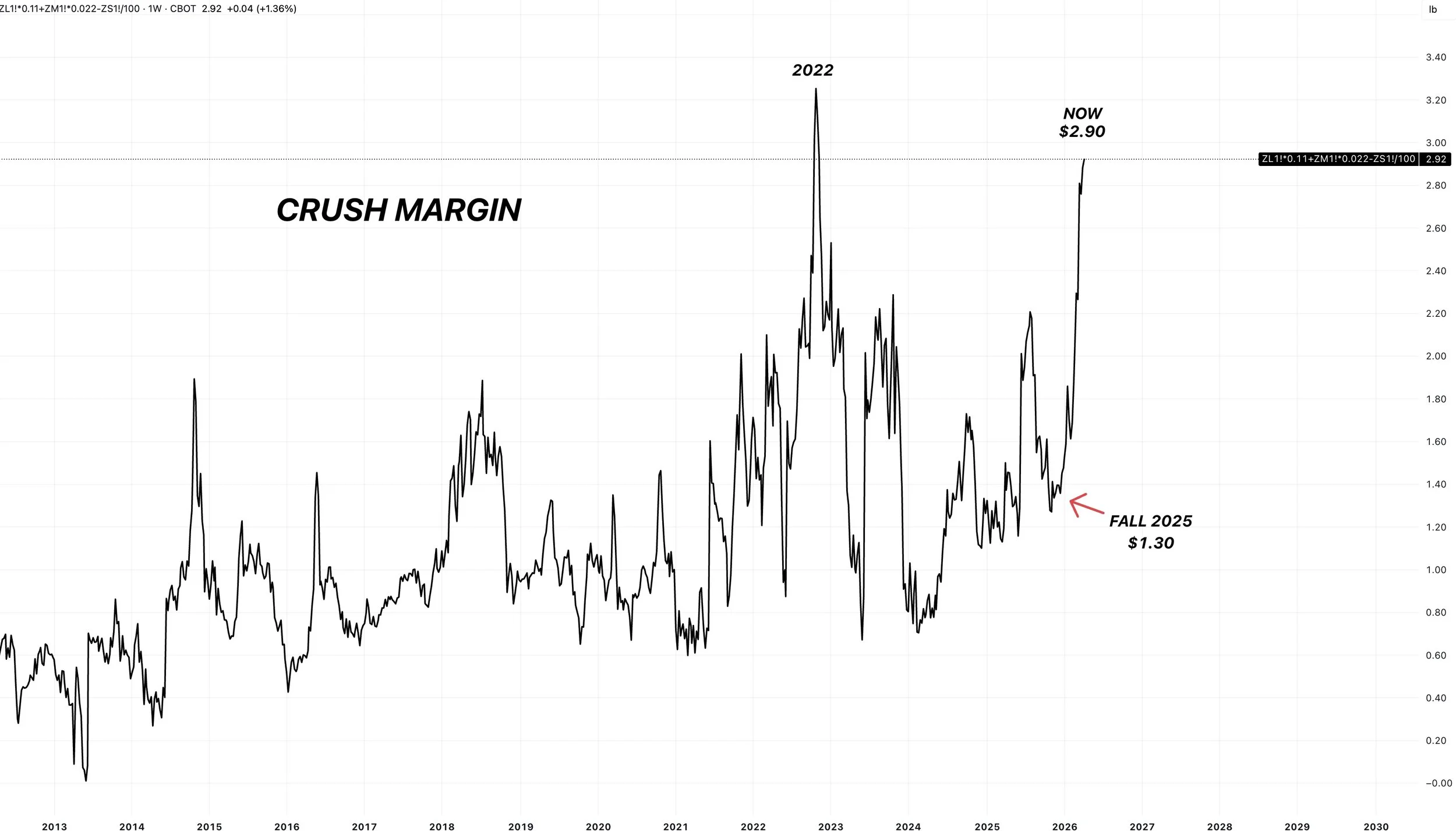 In the tweet below he talks about how crush margin is nearly $3.