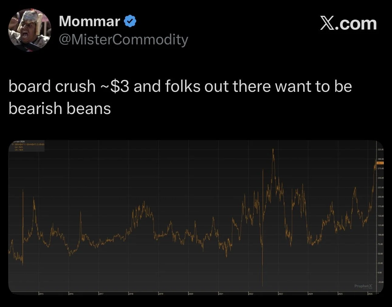 Here is a great tweet the highly respected Mister Commodity where he talks about crush margin.