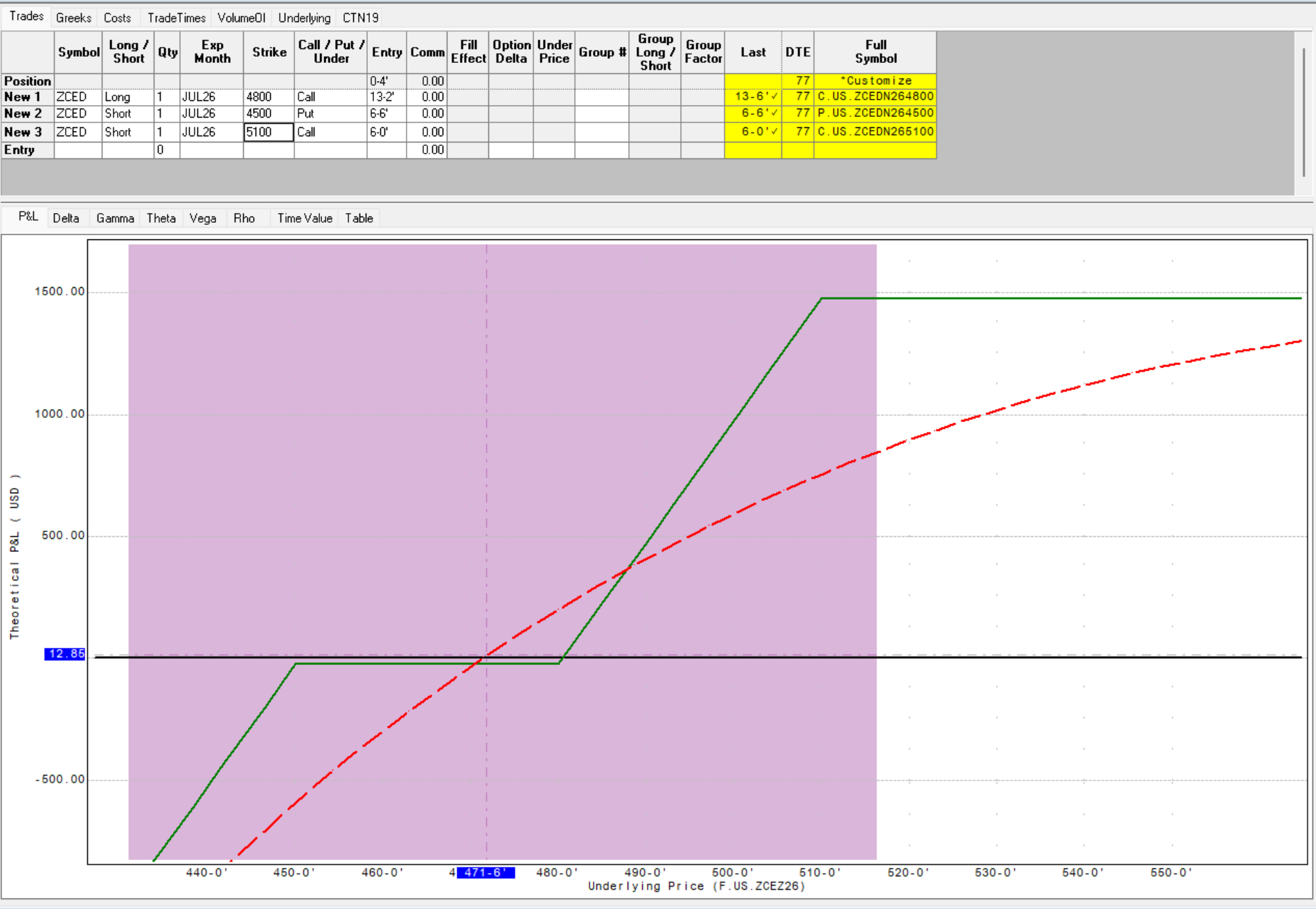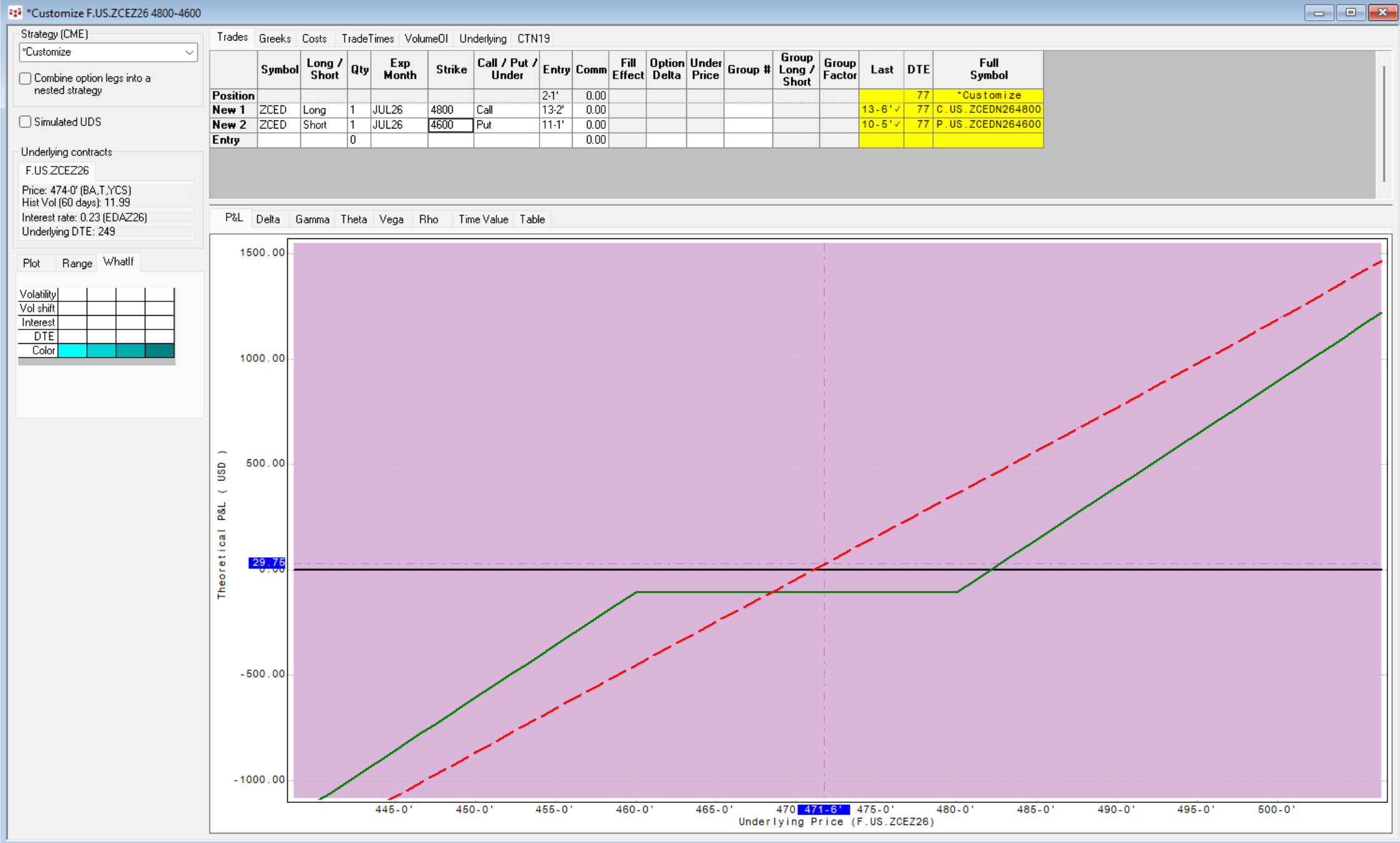 So you make and lose nothing besides the 1/2 cent if corn is between $4.50 and $4.80 at expiration.