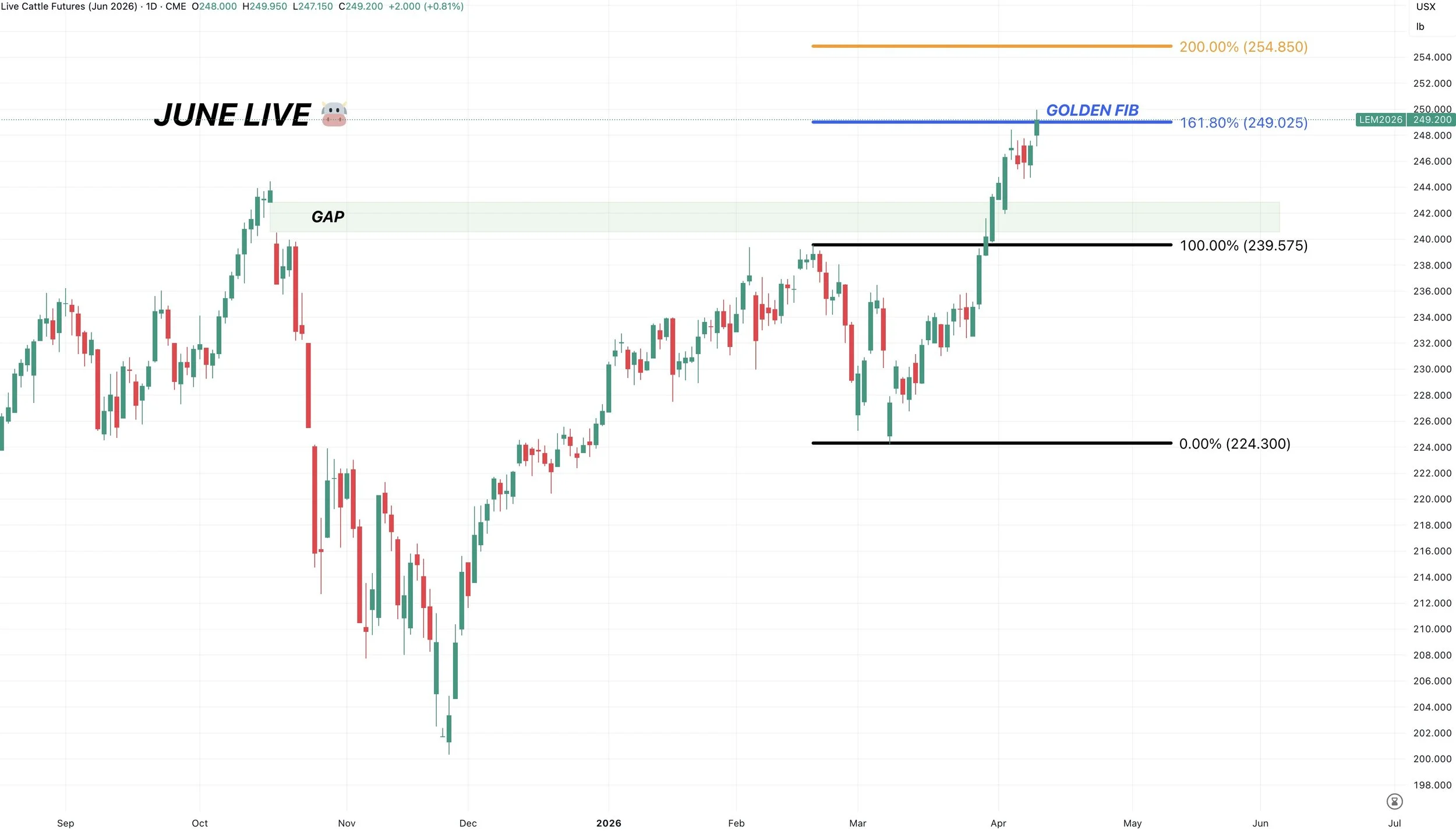 Secondary target would be the 200% level at just under 255