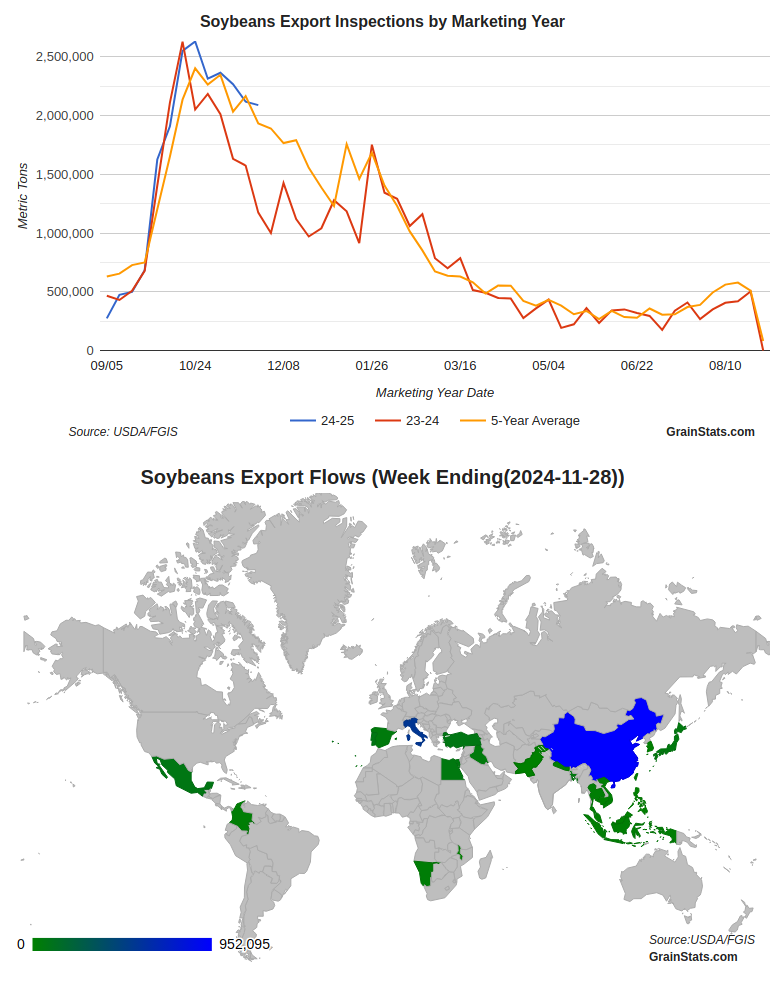 Along with corn, soybean demand has actually been relatively solid following the awful start. As bean exports are actually head of USDA pace now. So demand isn’t really an issue here.