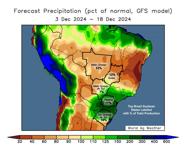 Here is Brazil's current outlook. A tad drier than normal but nothing to worry about for now. Especially considering they've received abundant moisture.