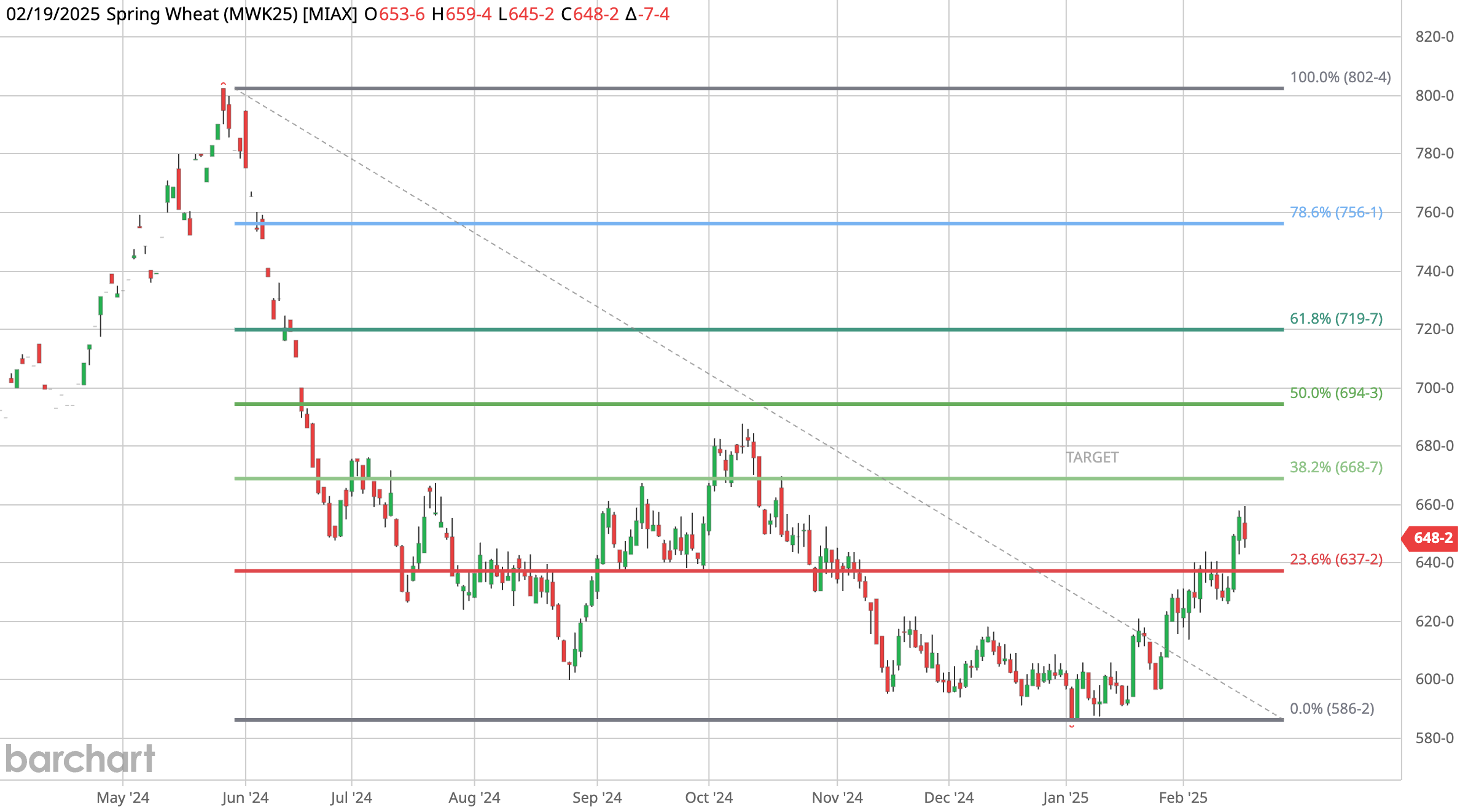 Here is KC March Wheat. We exactly tapped that 38.2% retracement to the May highs. Right at the target.