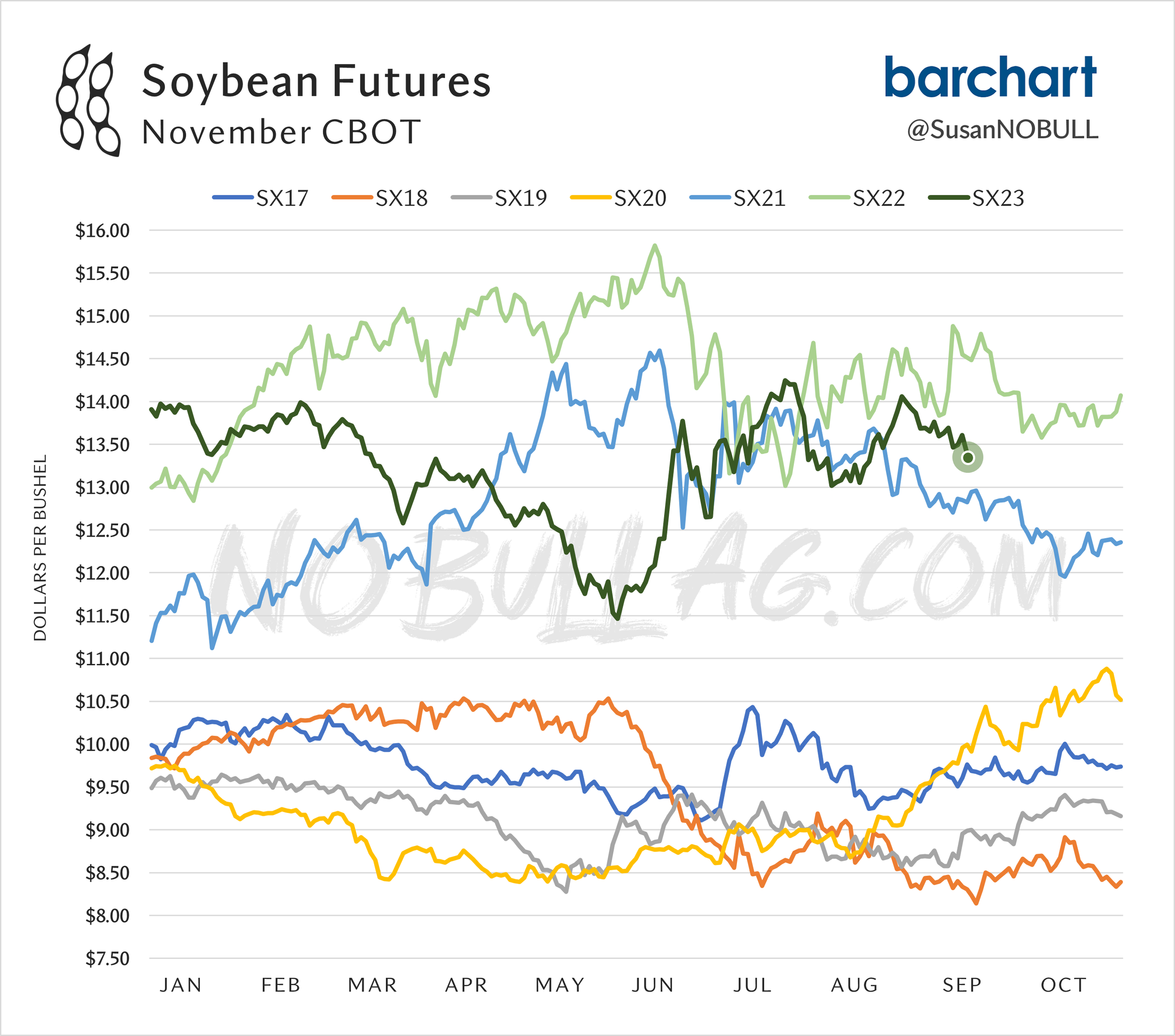 So yes, long term, I think the sky is really the limit for beans. But short term we could still definitely see some more harvest pressure. Remember, it is often difficult for beans to rally throughout harvest.