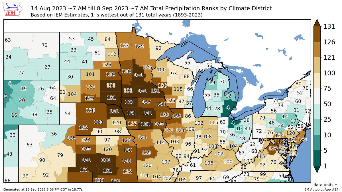 Looking at our number 2 producing state of Iowa, nearly the entire state had it's driest second half of August ever.