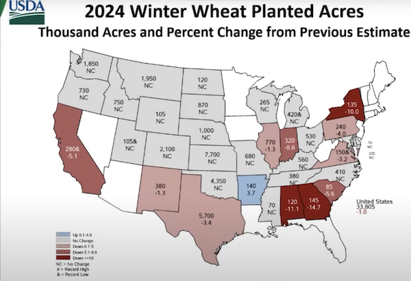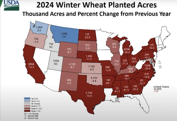 Harvested acres are going down with floods etc