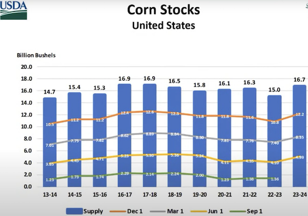 Corn acres & stocks increased