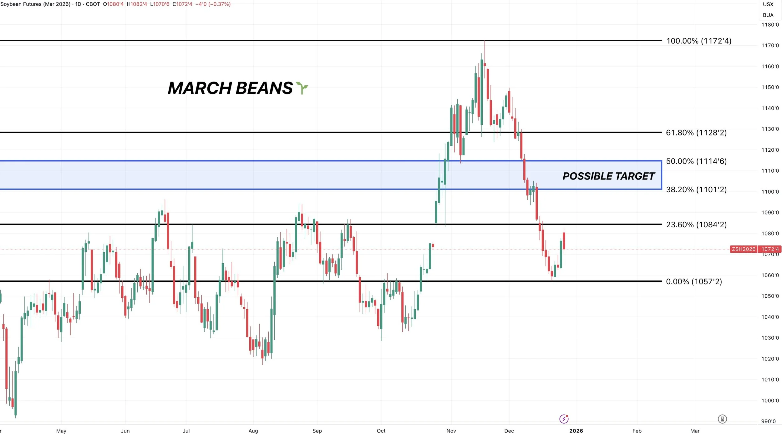 Since this correction was so deep, it appears unlikely that this market is going to go and post new highs. If it did, I think it would take a larger outside factor. Such as an issue in Brazil or China buying more beans than the market has currently priced in. But for now, neither of those seem all that likely.