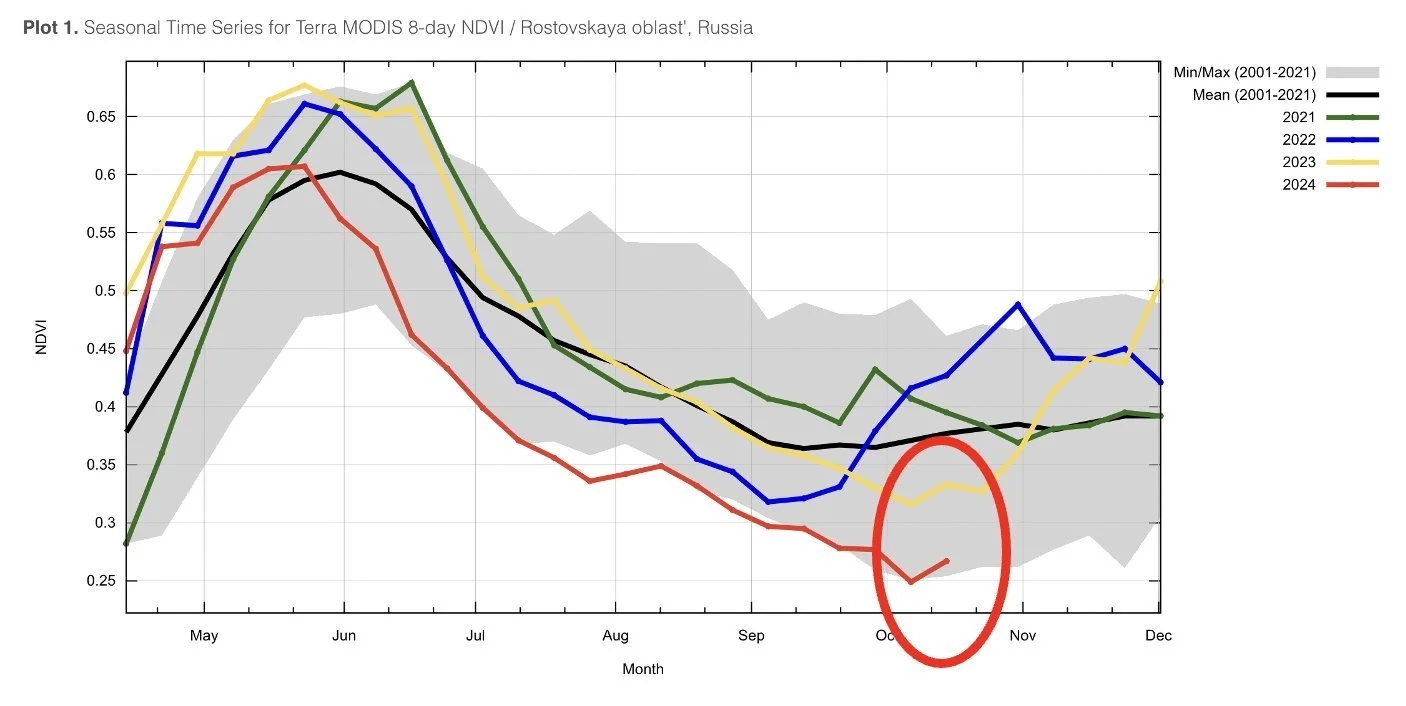 "The Russian South has received some rain, but it's likely too little, too late to fully reverse the worst crop conditions seen in many years."