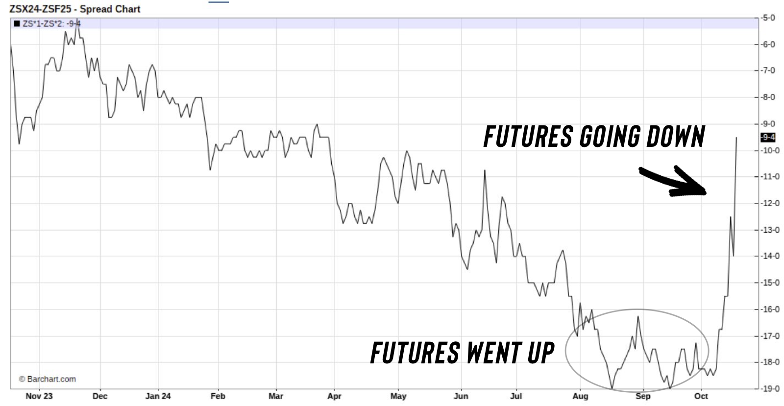 Spread action is by no means a perfect indicator. But it means there is more buyers that want the product now rather than later.